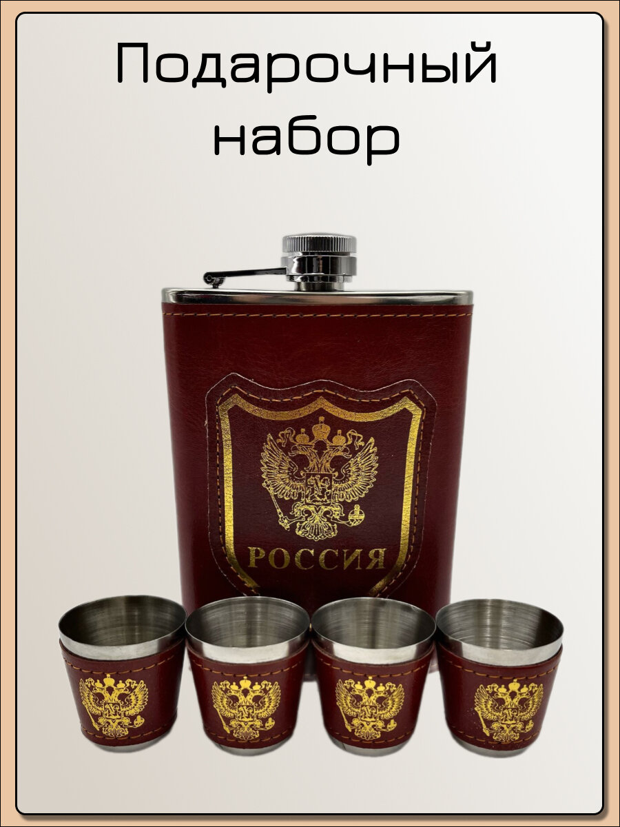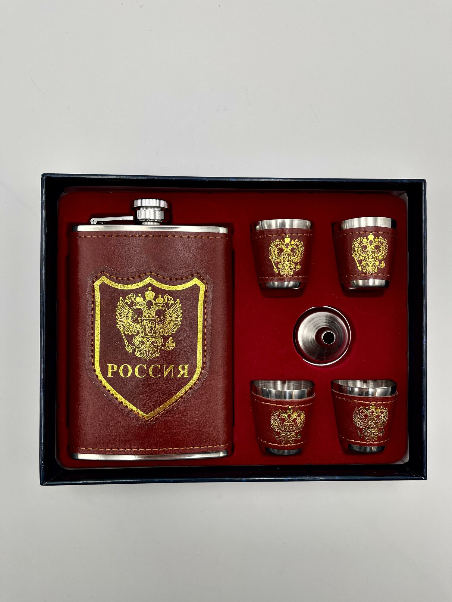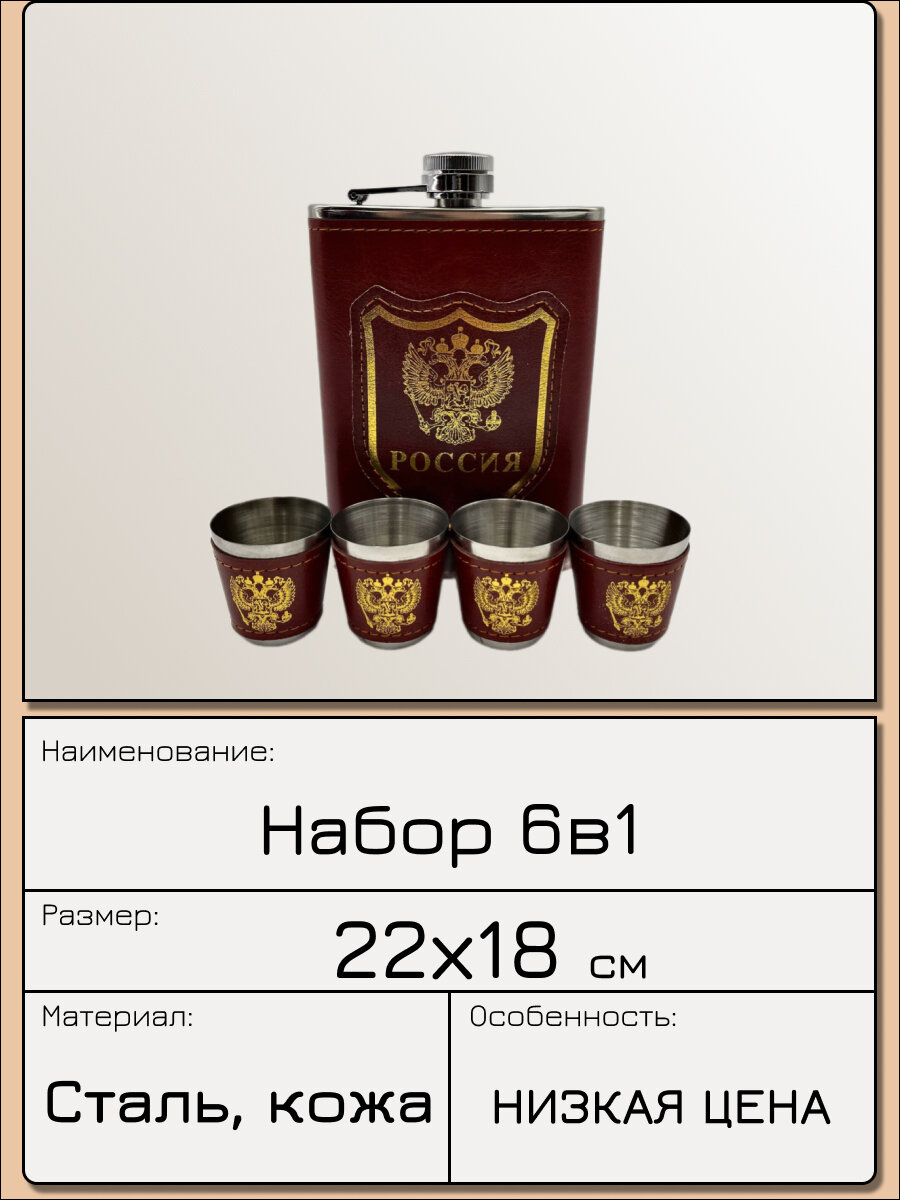 Подарочный набор 6 в 1: фляжка, 4 рюмки, воронка, -22х18 см. интересное: