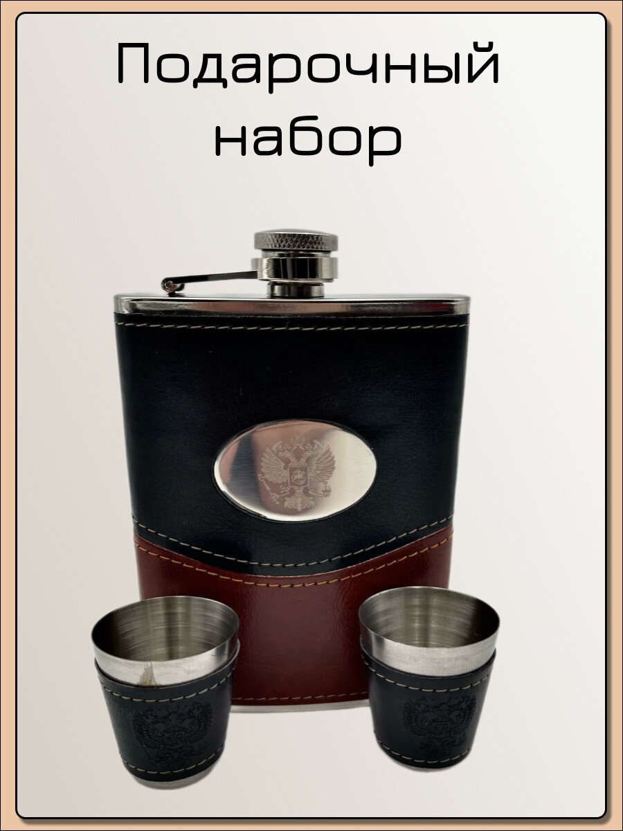 Подарочный набор 5 в 1: фляжка, 4 рюмки, воронка, -22х18 см. интересное: