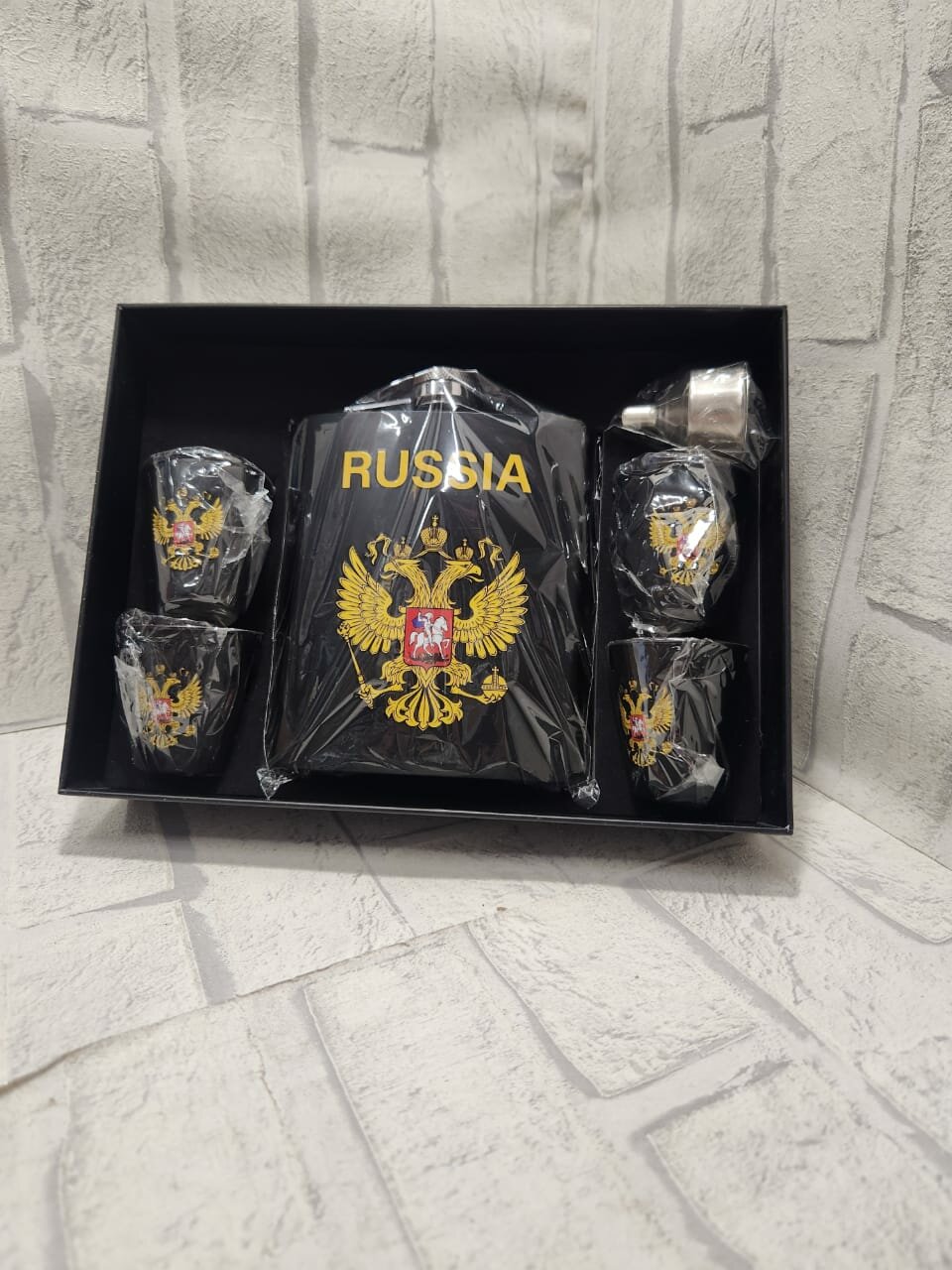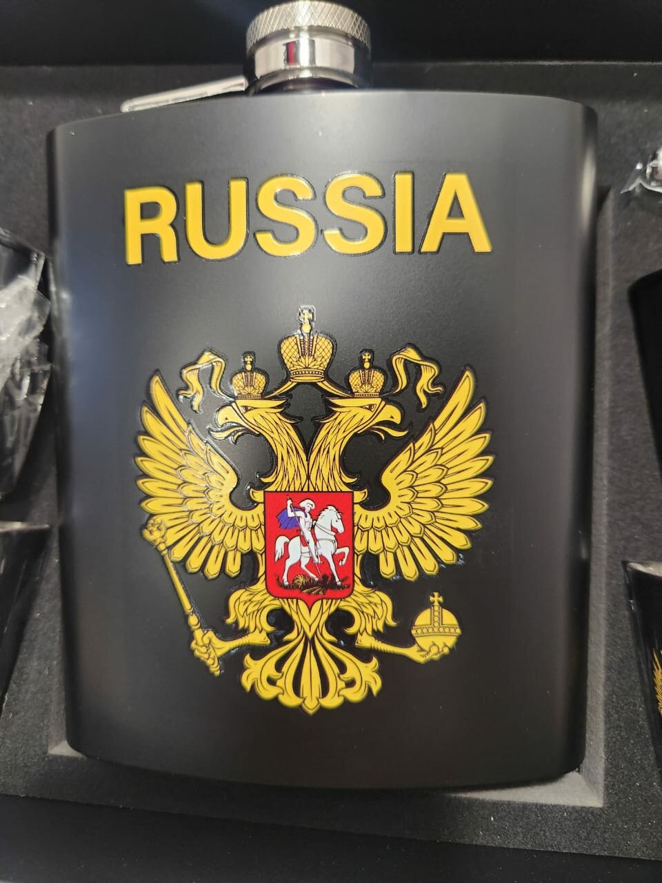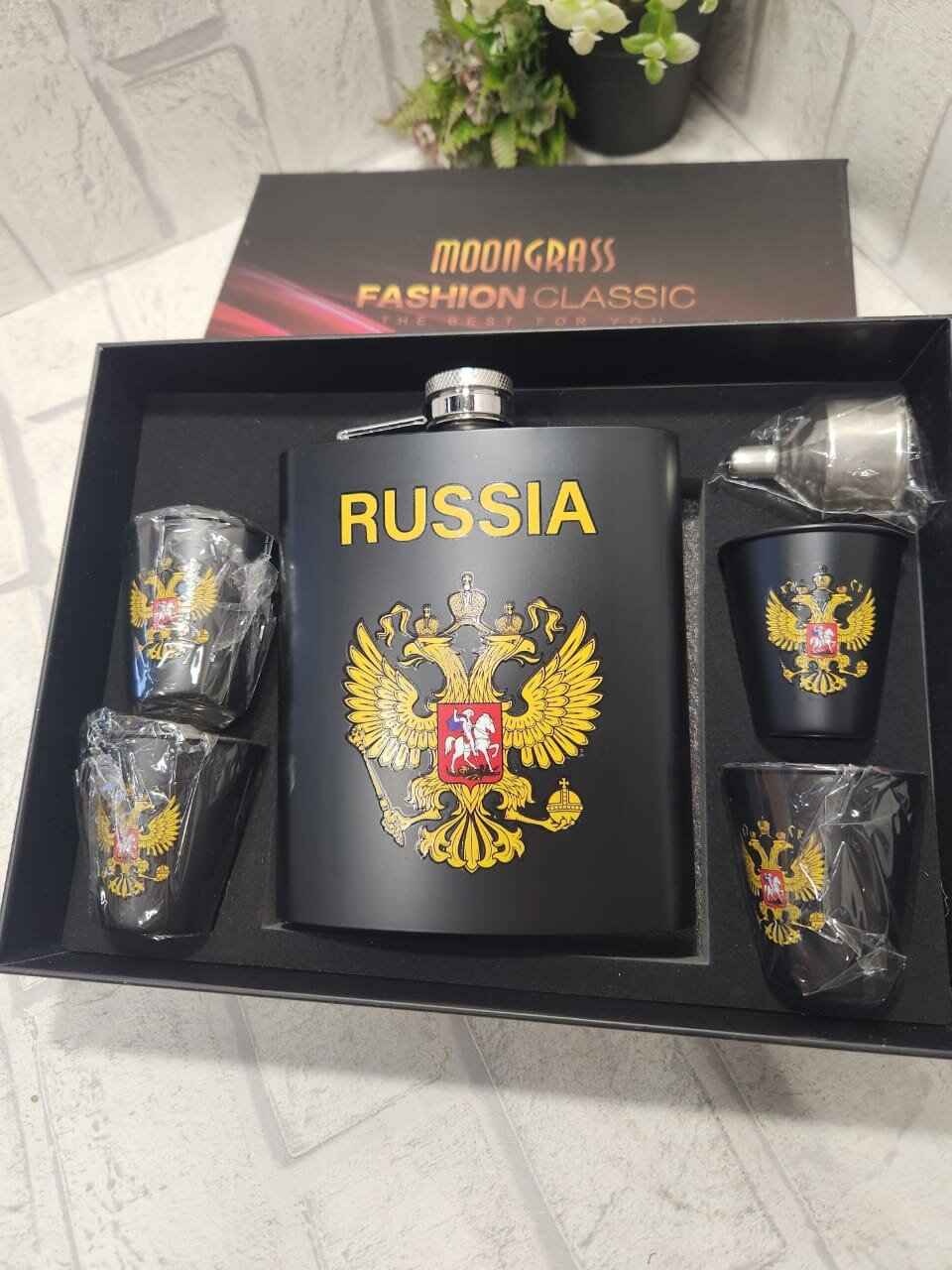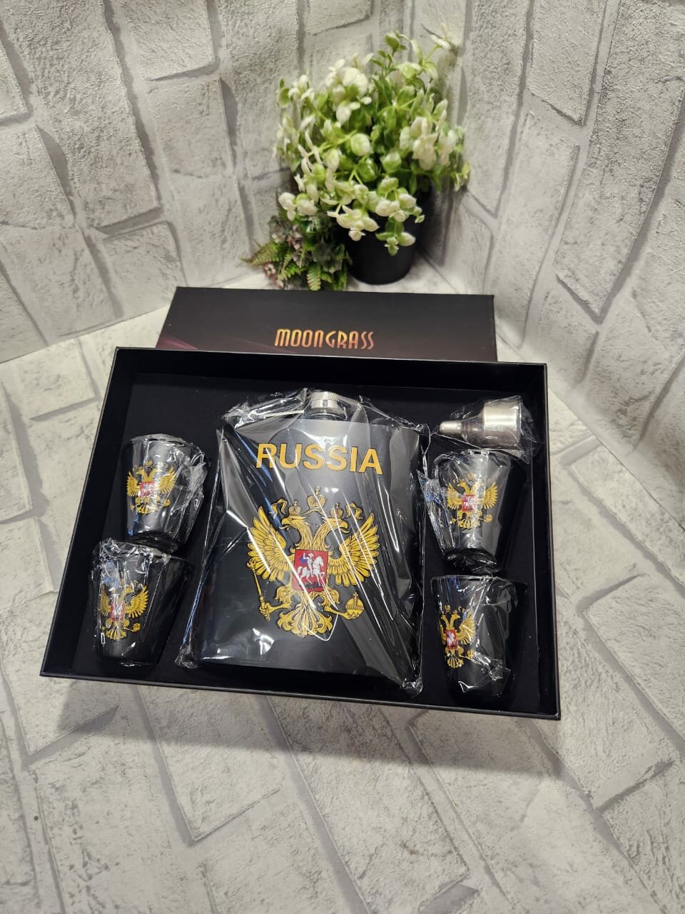 Купить Подарочный набор мужчине MoonGrass Фляга+рюмки с Гербом России