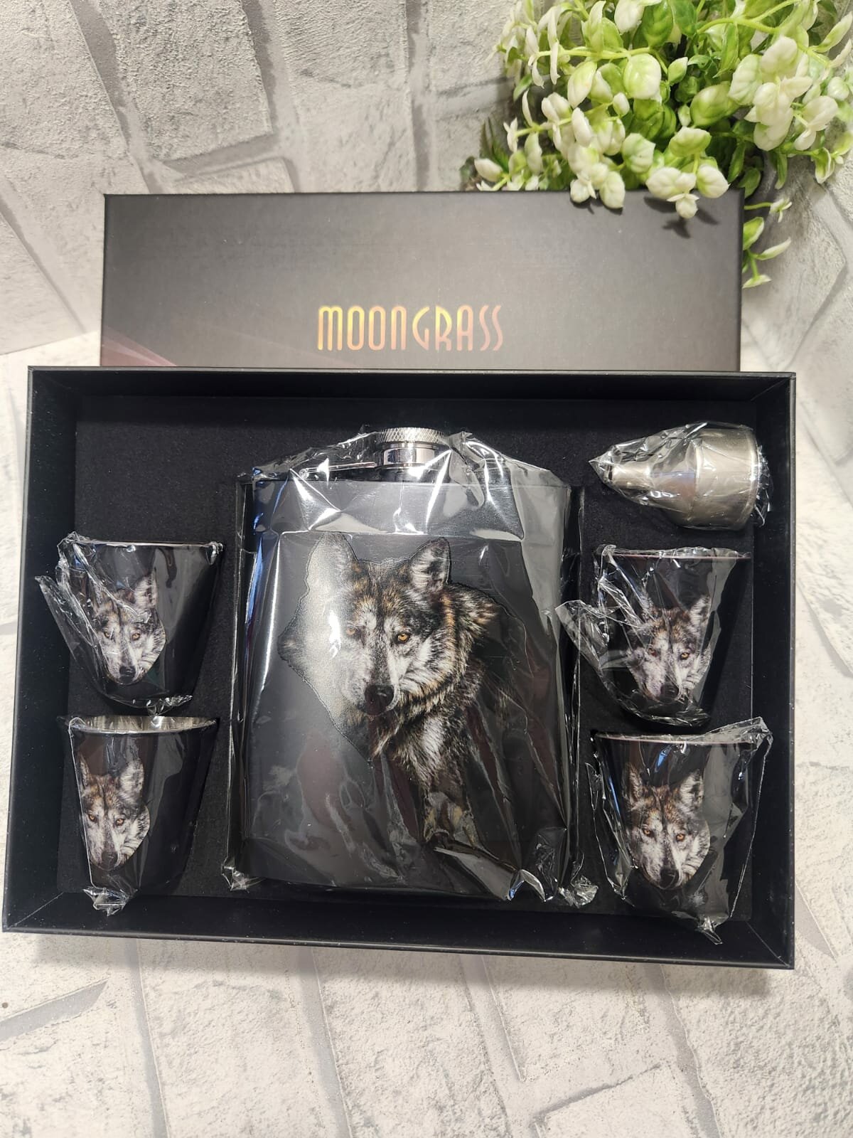 Купить Подарочный набор мужчине MoonGrass Фляга+рюмки с логотипом Волка