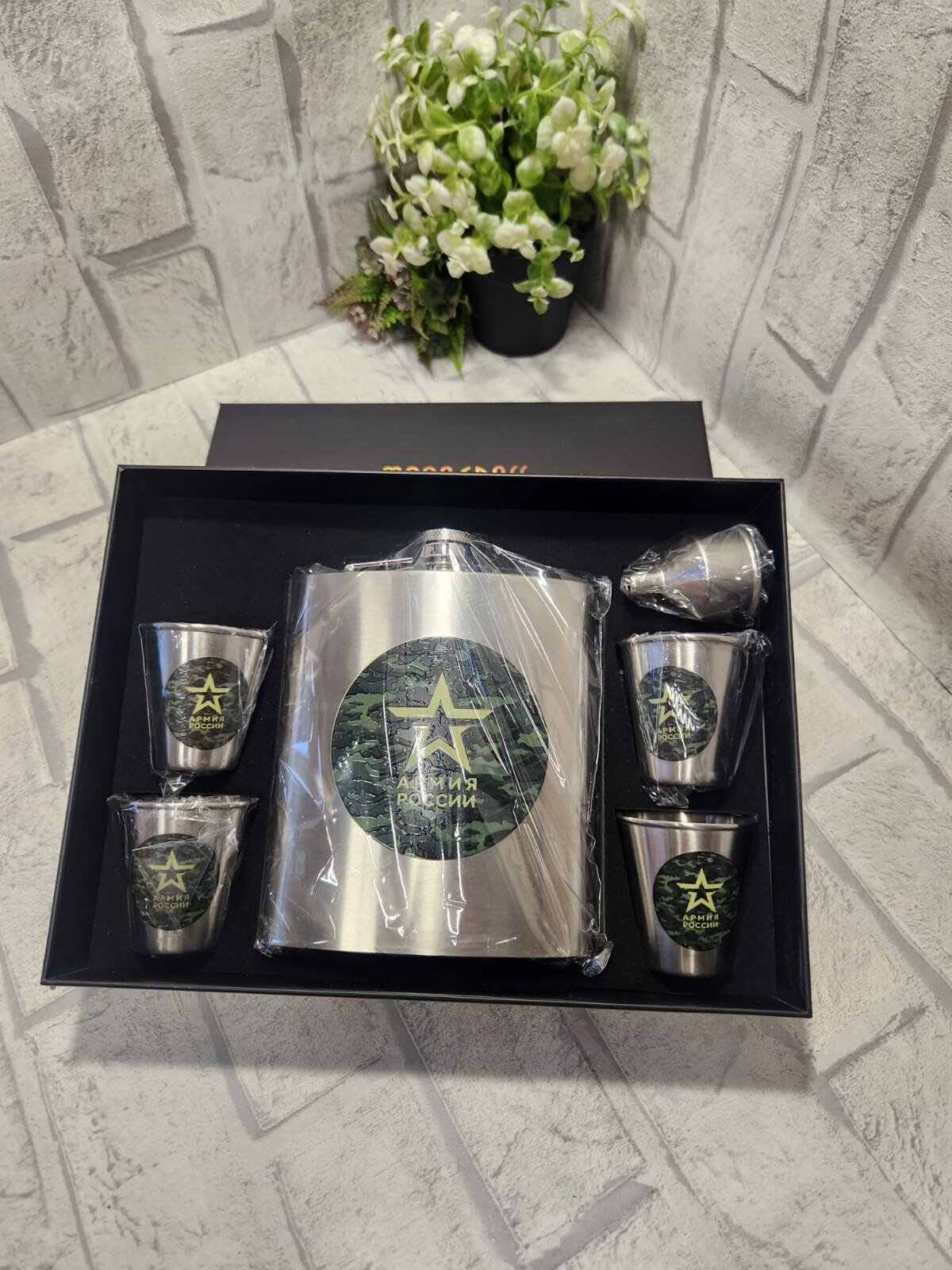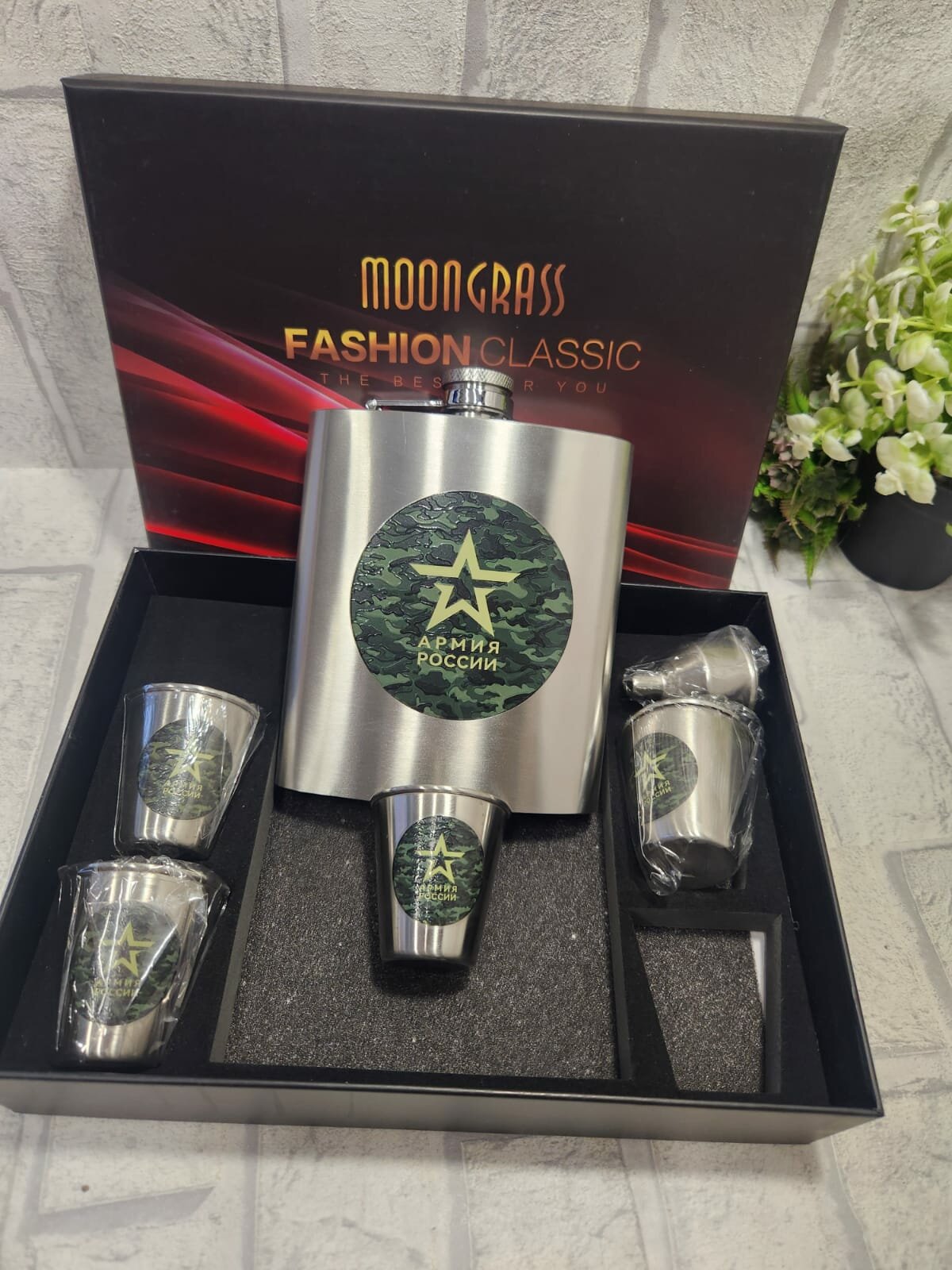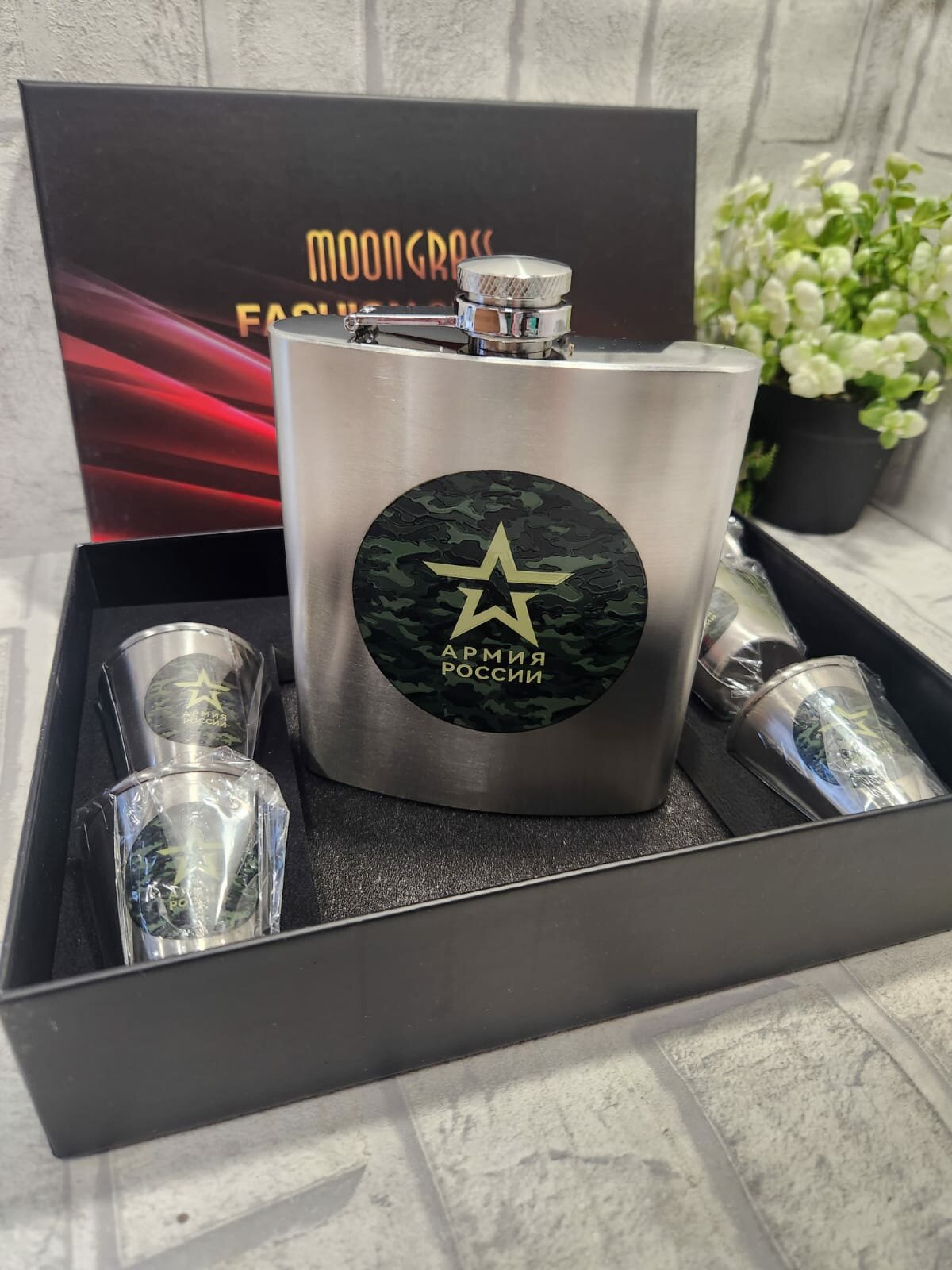Купить Подарочный набор мужчине MoonGrass Фляга+рюмки с логотипом Армия России с Серой флягой