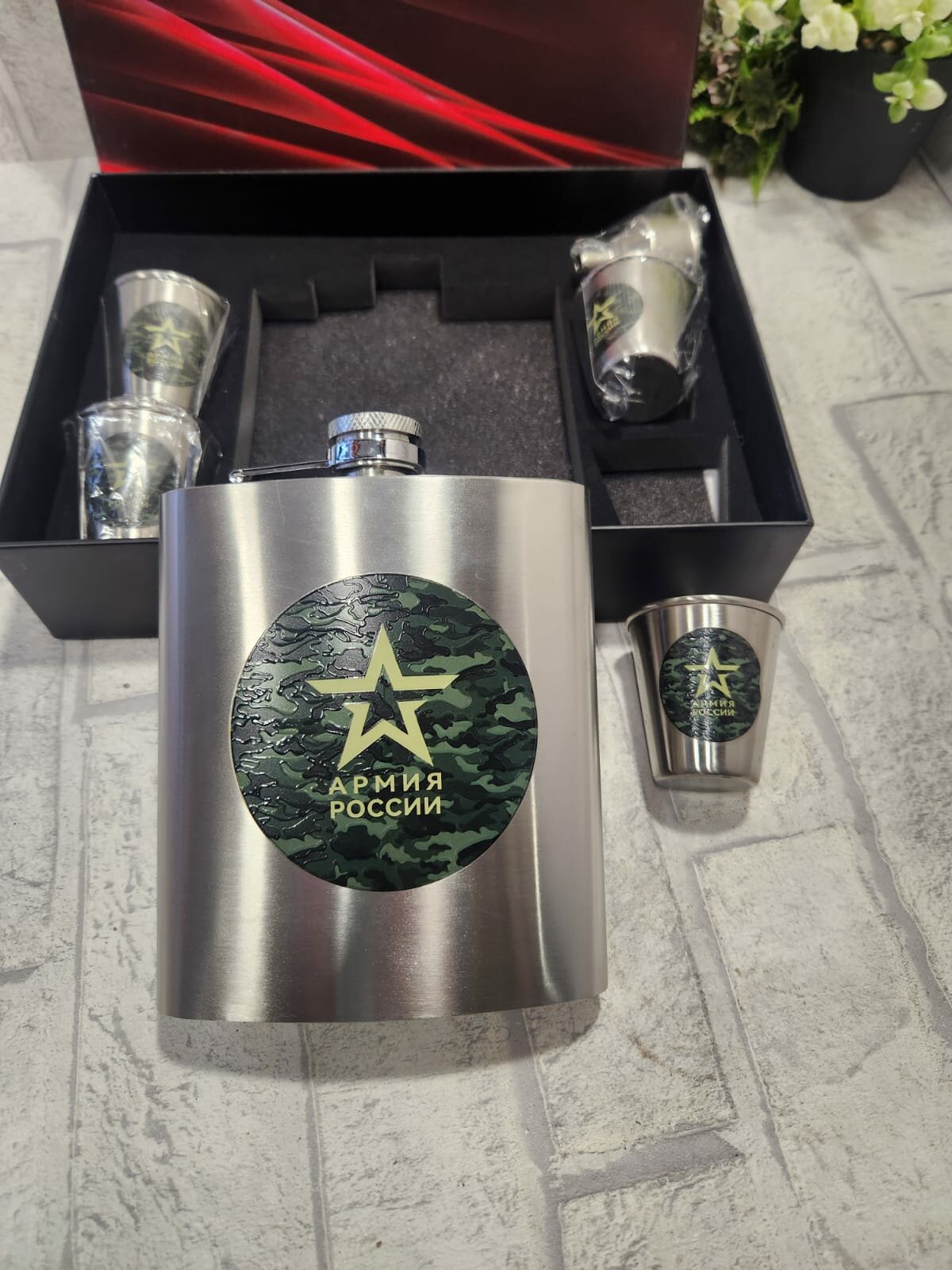 СохранитьПодарочный набор мужчине MoonGrass Фляга+рюмки с логотипом Армия России с Серой флягой интересное: