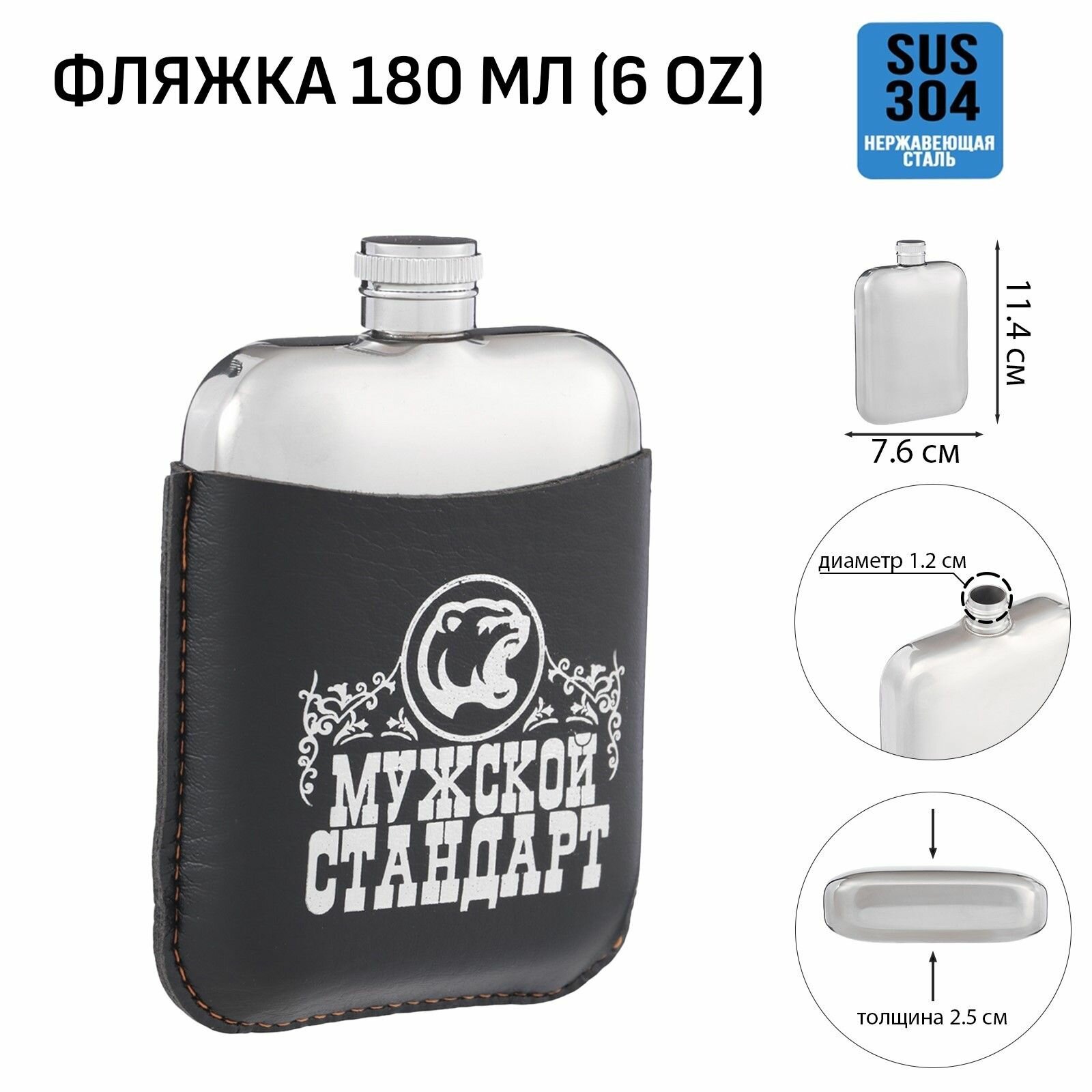 Купить Фляжка для алкоголя Мужской стандарт , нержавеющая сталь, подарочная, 180 мл, 6 oz