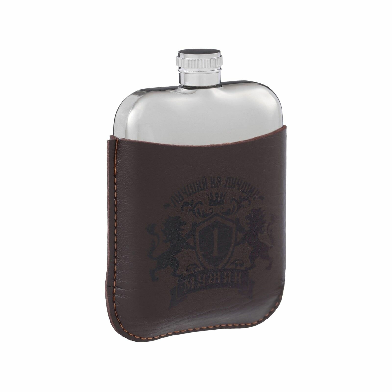 Фляжка для алкоголя Мужчина №1 , нержавеющая сталь, чехол, подарочная, 180 мл, 6 oz