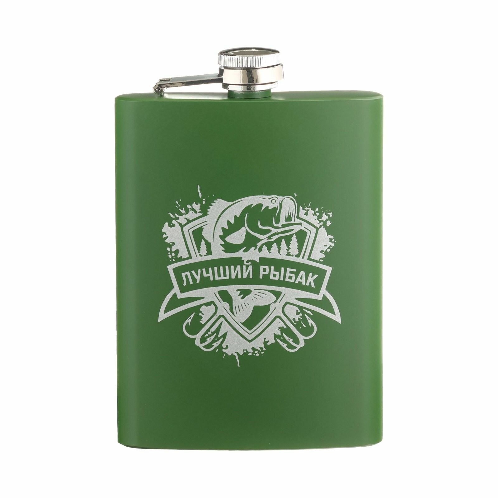 Фляжка для алкоголя Лучший рыбак , нержавеющая сталь, подарочная, 180 мл, 6 oz