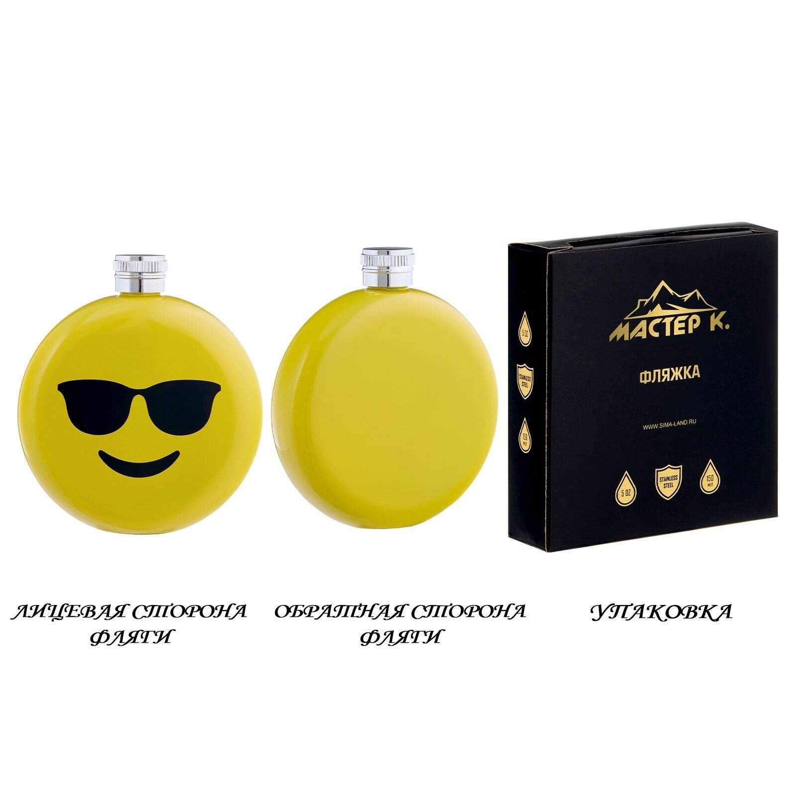Купить Фляжка для алкоголя Смайл , нержавеющая сталь, круглая, подарочная, 150 мл