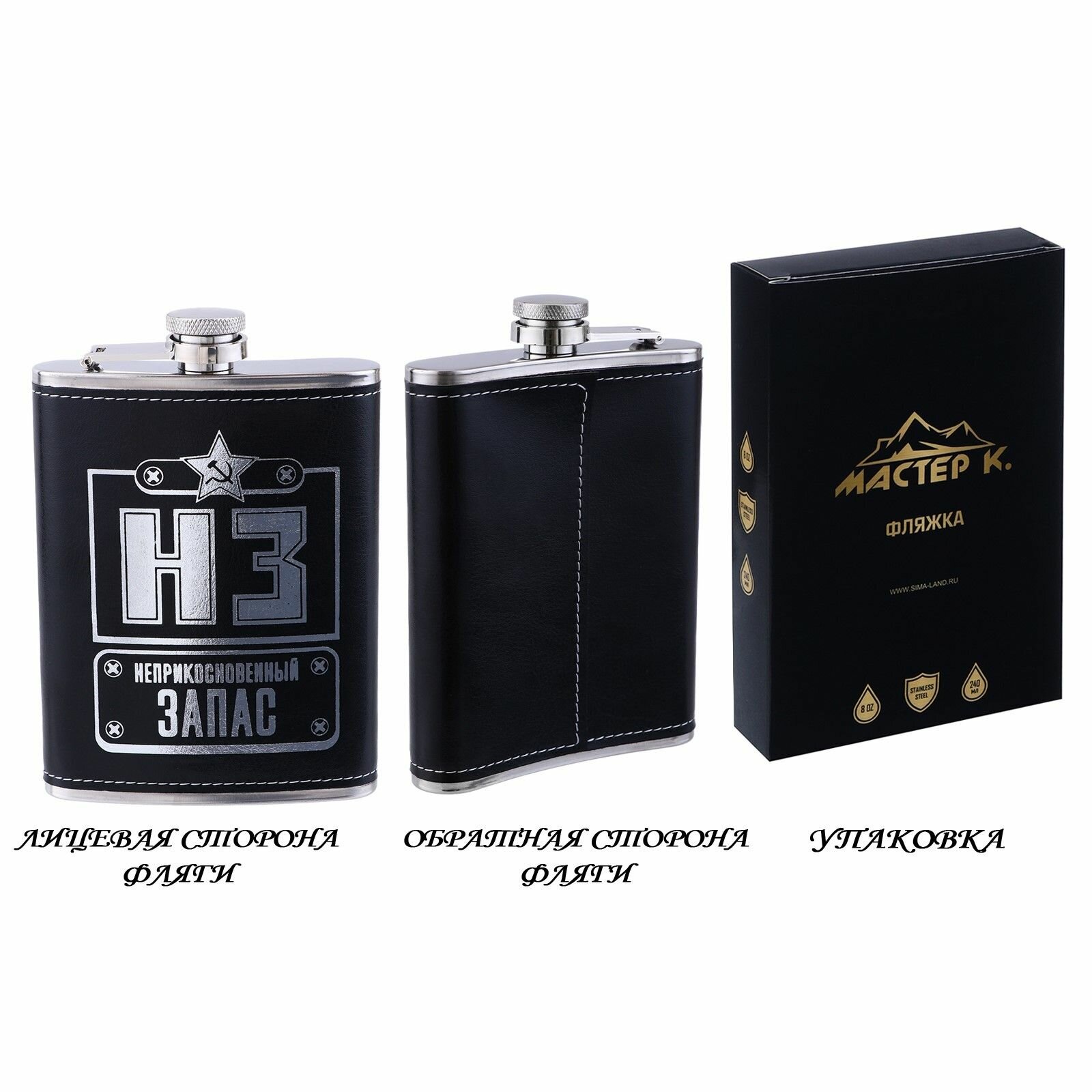 Купить Фляжка для алкоголя НЗ , нержавеющая сталь, подарочная, армейская, 240 мл, 8 oz