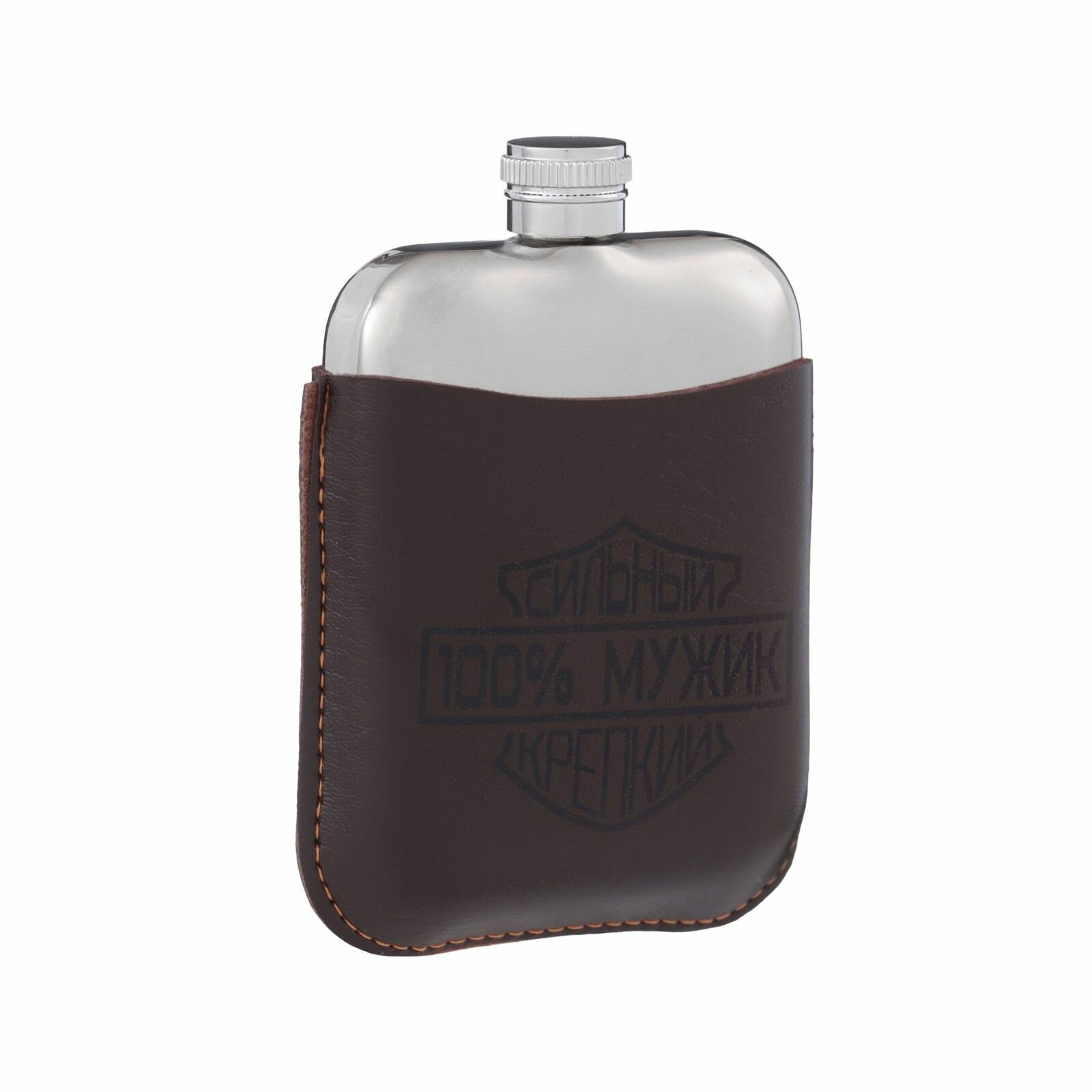 Купить Фляжка для алкоголя 100% мужик , нержавеющая сталь, чехол, подарочная, 180 мл, 6 oz