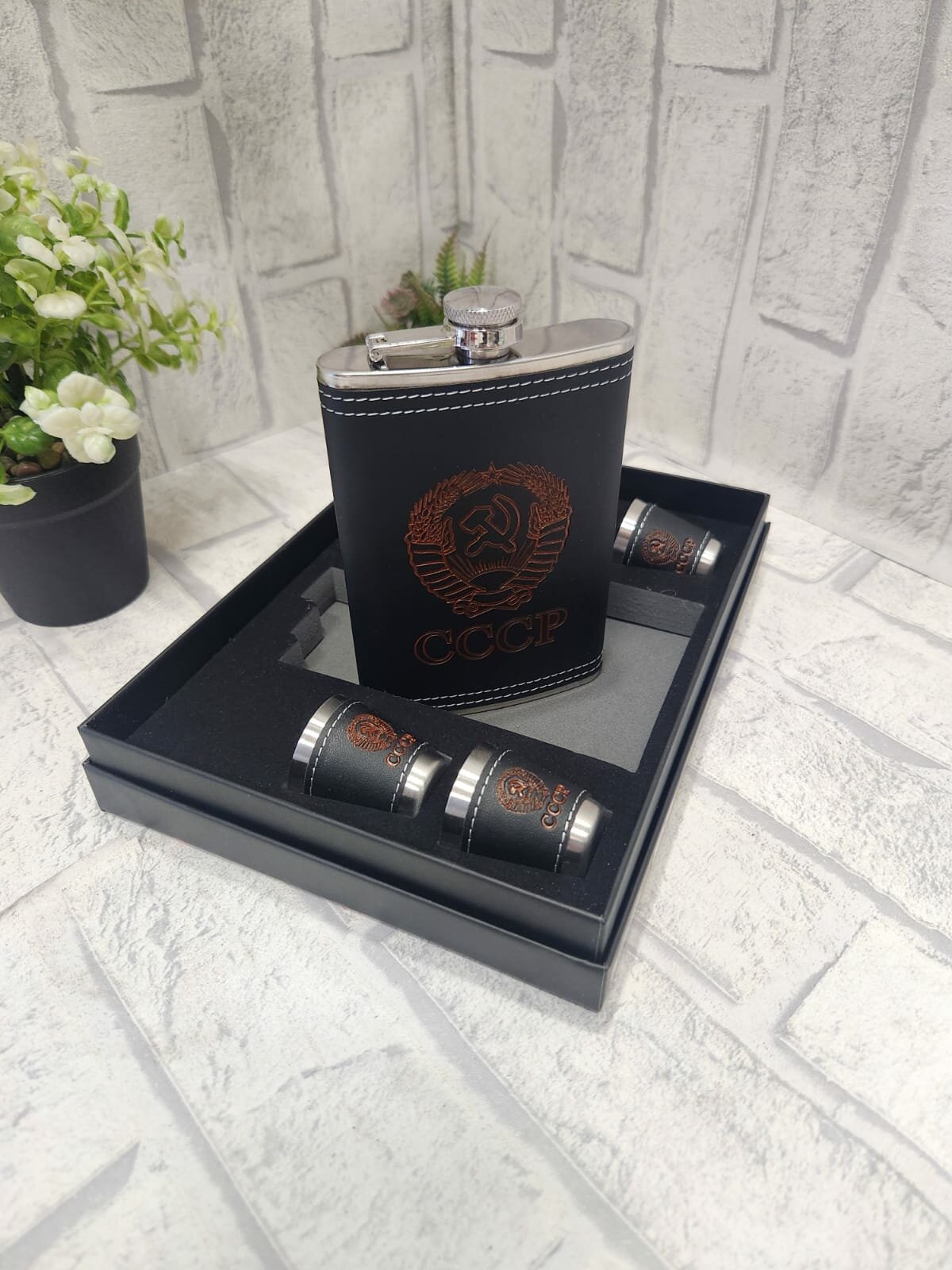 СохранитьПодарочный набор мужчине MoonGrass Фляга+рюмки с гербом и надписью СССР интересное: