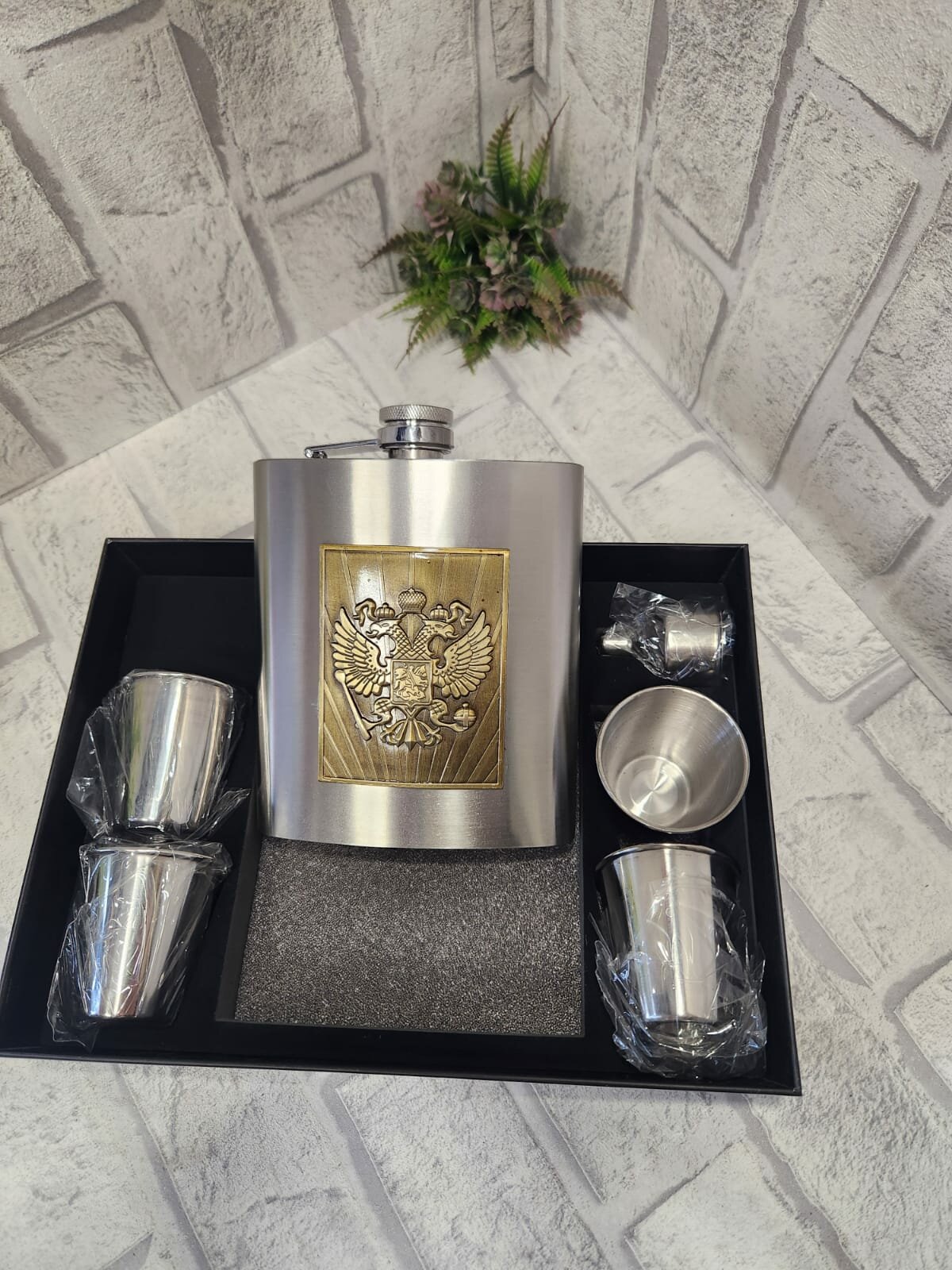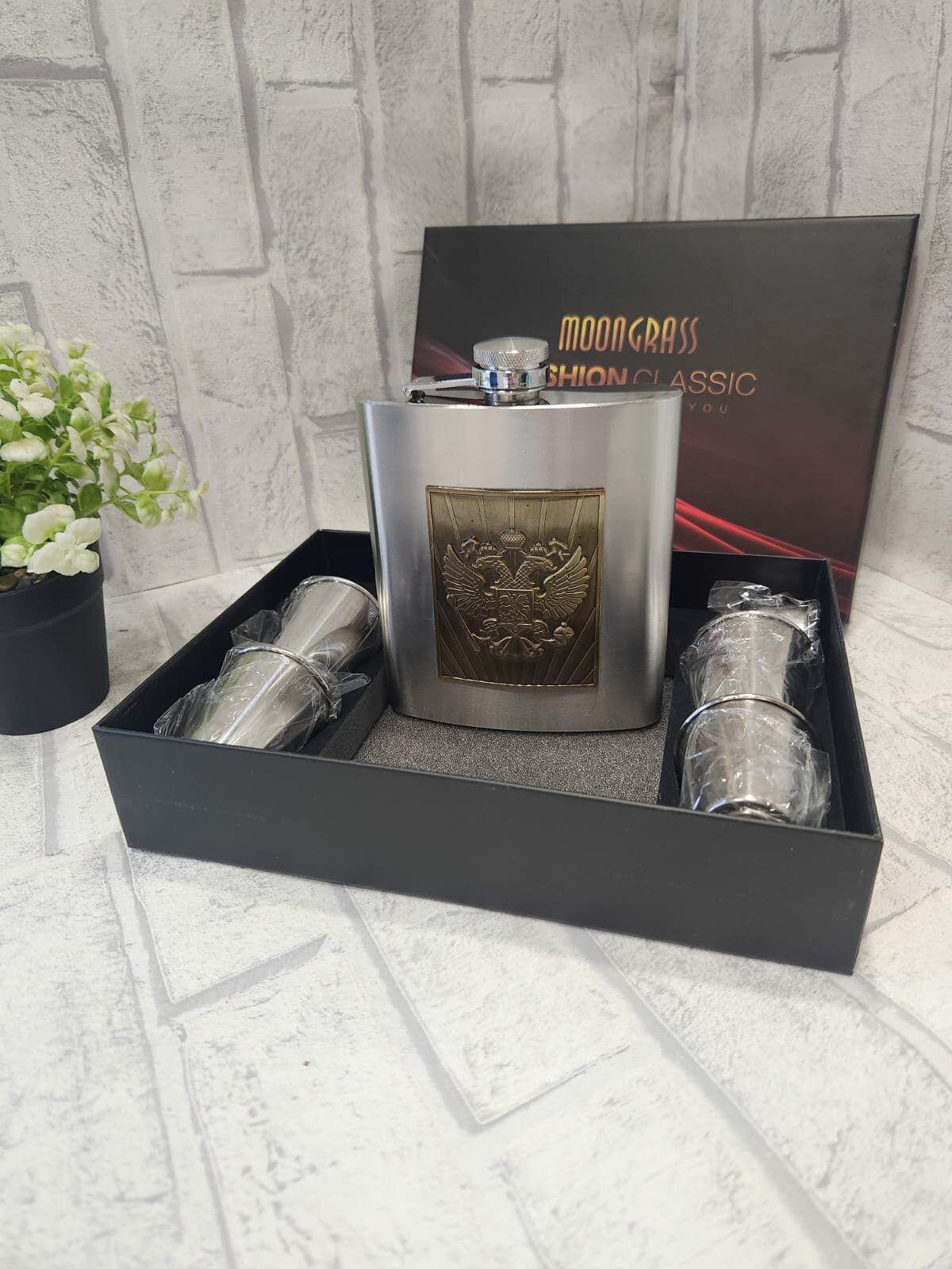 Купить Подарочный набор мужчине MoonGrass Фляга+рюмки с Гербом серебренного цвета