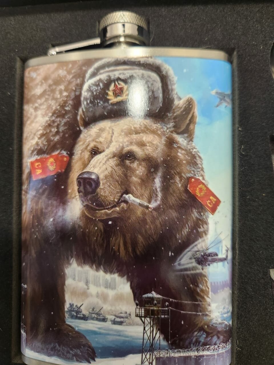 Подарочный набор мужчине MoonGrass Фляга+рюмки, Черного цвета с надписью СССР