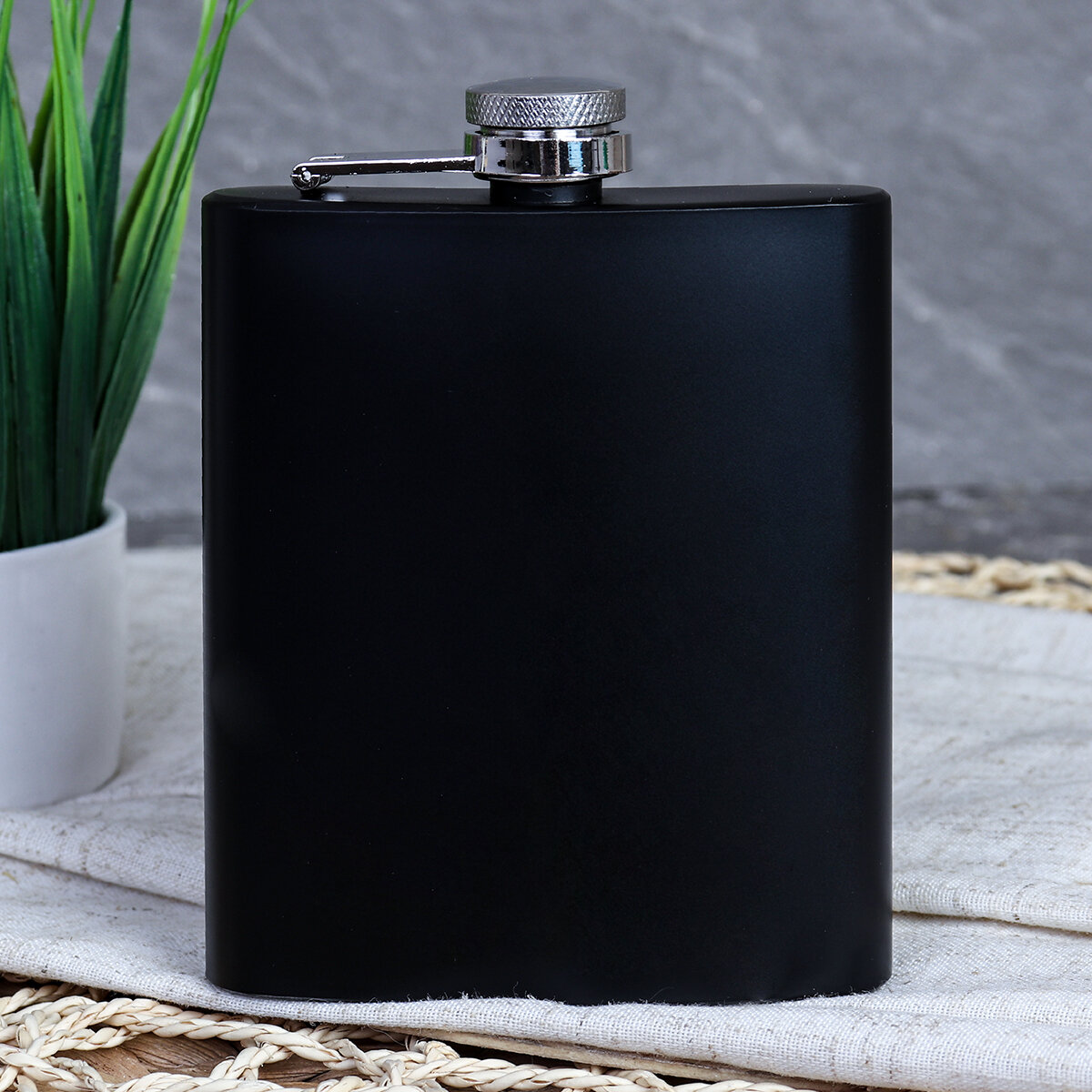 Купить Фляжка черная матовая подарочная, нержавеющая сталь, искусственная кожа, для алкоголя 200 мл