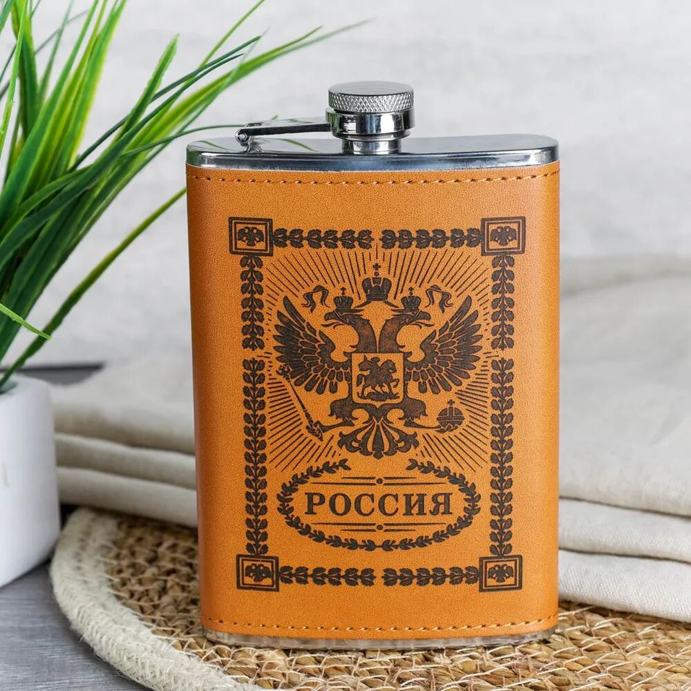 Фляжка 200 мл "Россия" нержавеющая сталь, экокожа, для алкоголя интересное: