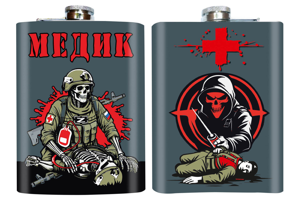 Купить Фляжка "Медик", Нержавеющая сталь 304, авторский дизайн, 9 oz (260 мл)