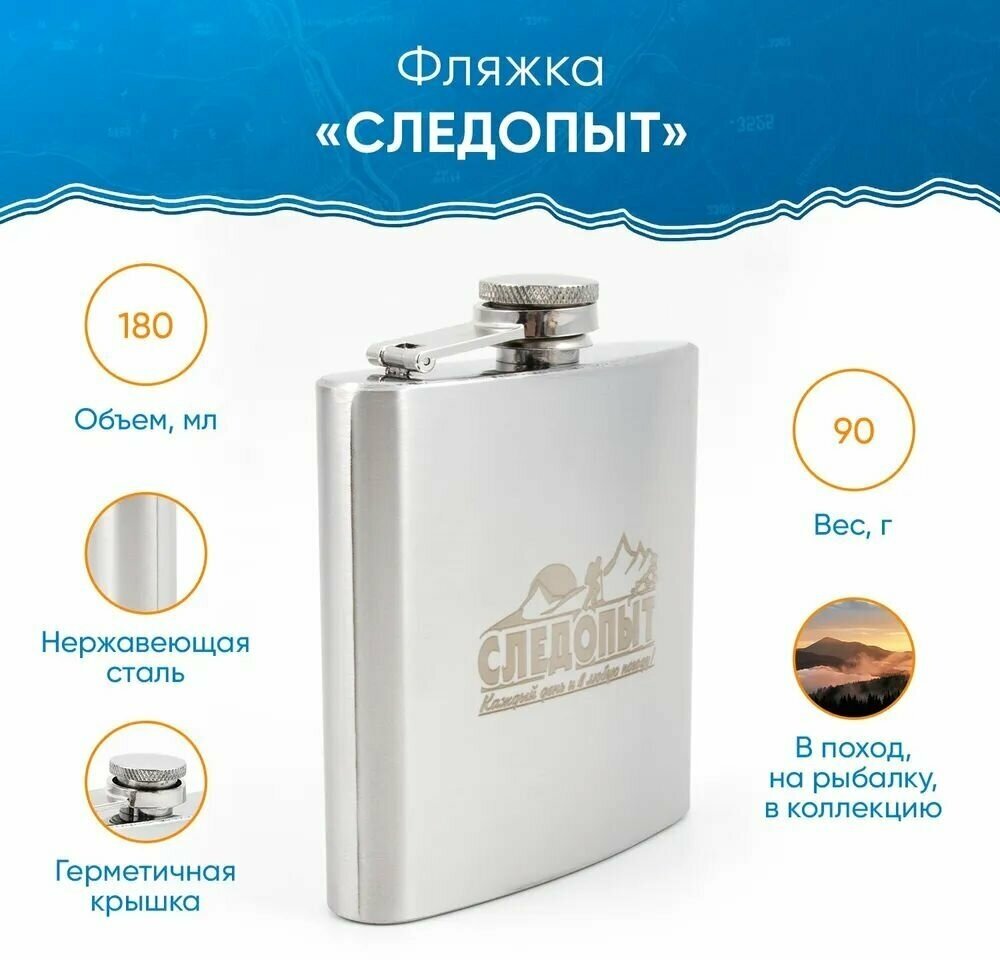 Фляжка нержавеющая сталь, объем 180 мл, производство Следопыт. интересное: