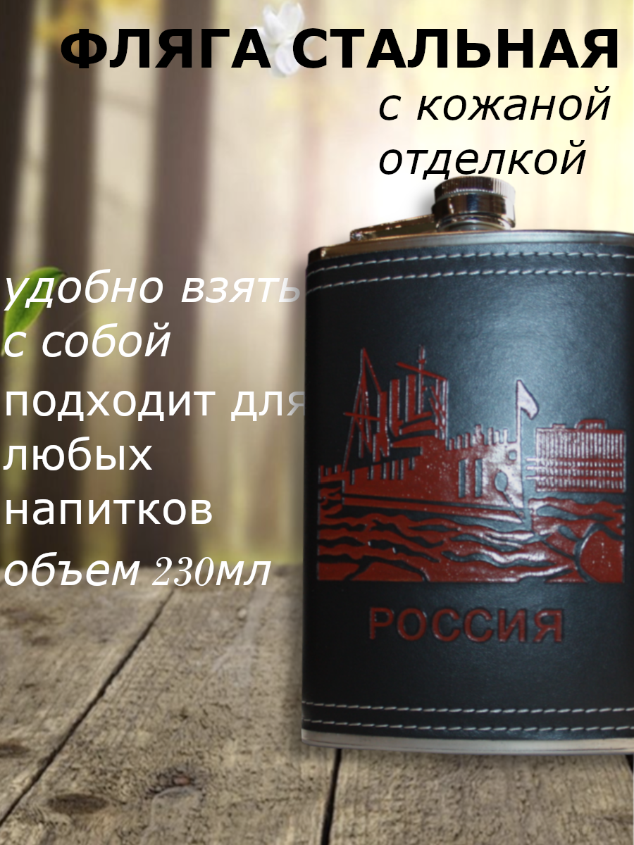 Купить Фляга стальная с кожаной отделкой и логотипом 230 мл
