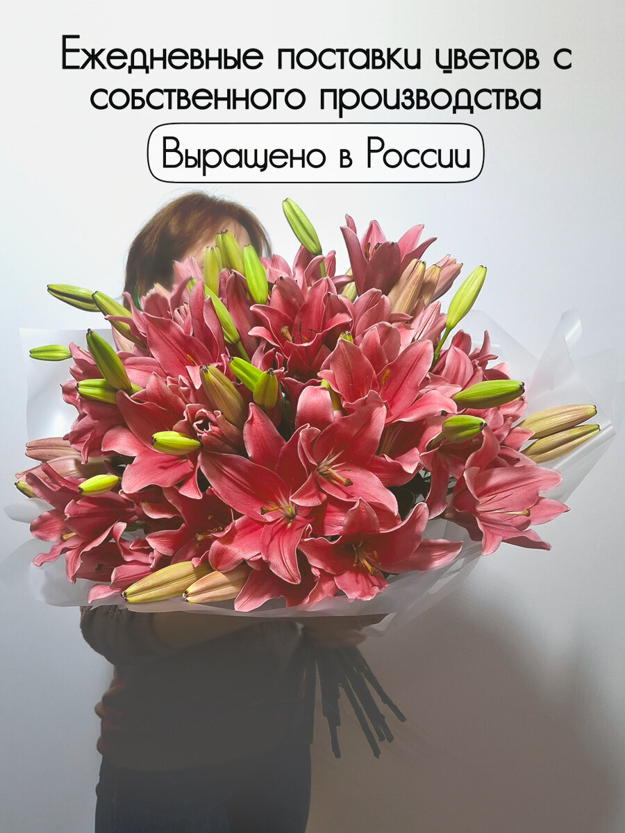 СохранитьМонобукет крупных розовых лилий, 21 стебель, высота 60 см. Florentika интересное: