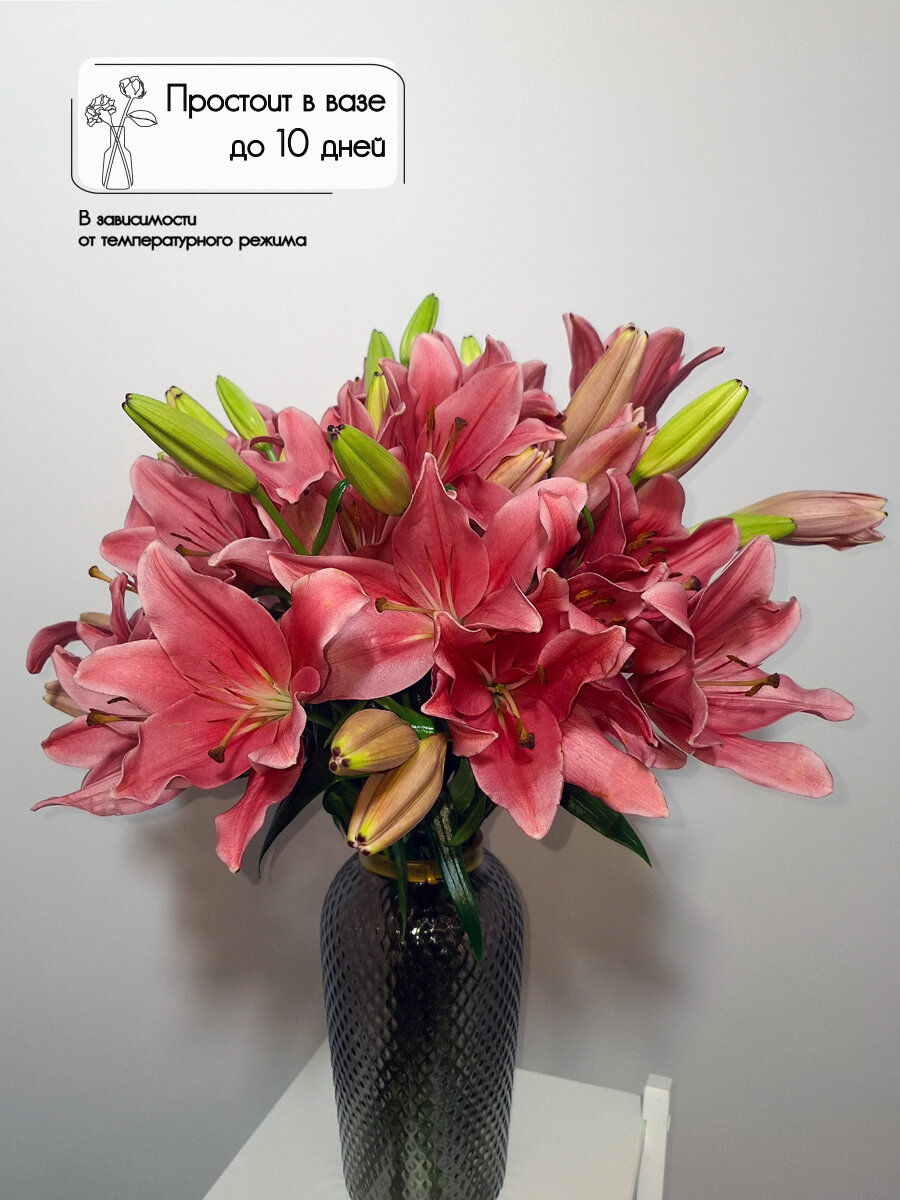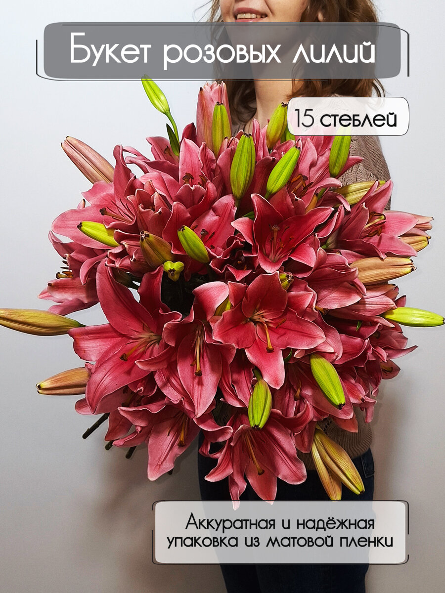 Купить Монобукет крупных розовых лилий, 15 стеблей, высота 60 см. Florentika