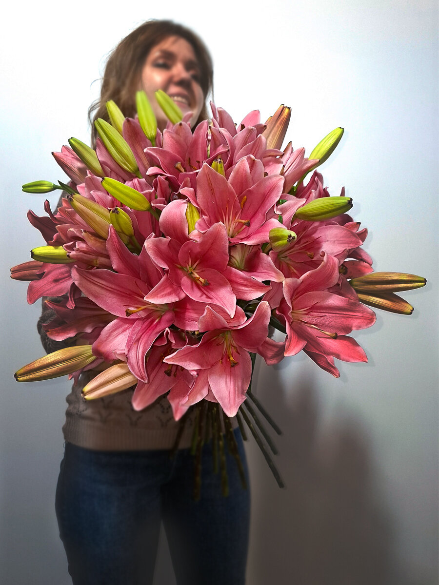 Монобукет крупных розовых лилий, 21 стебель, высота 60 см. Florentika