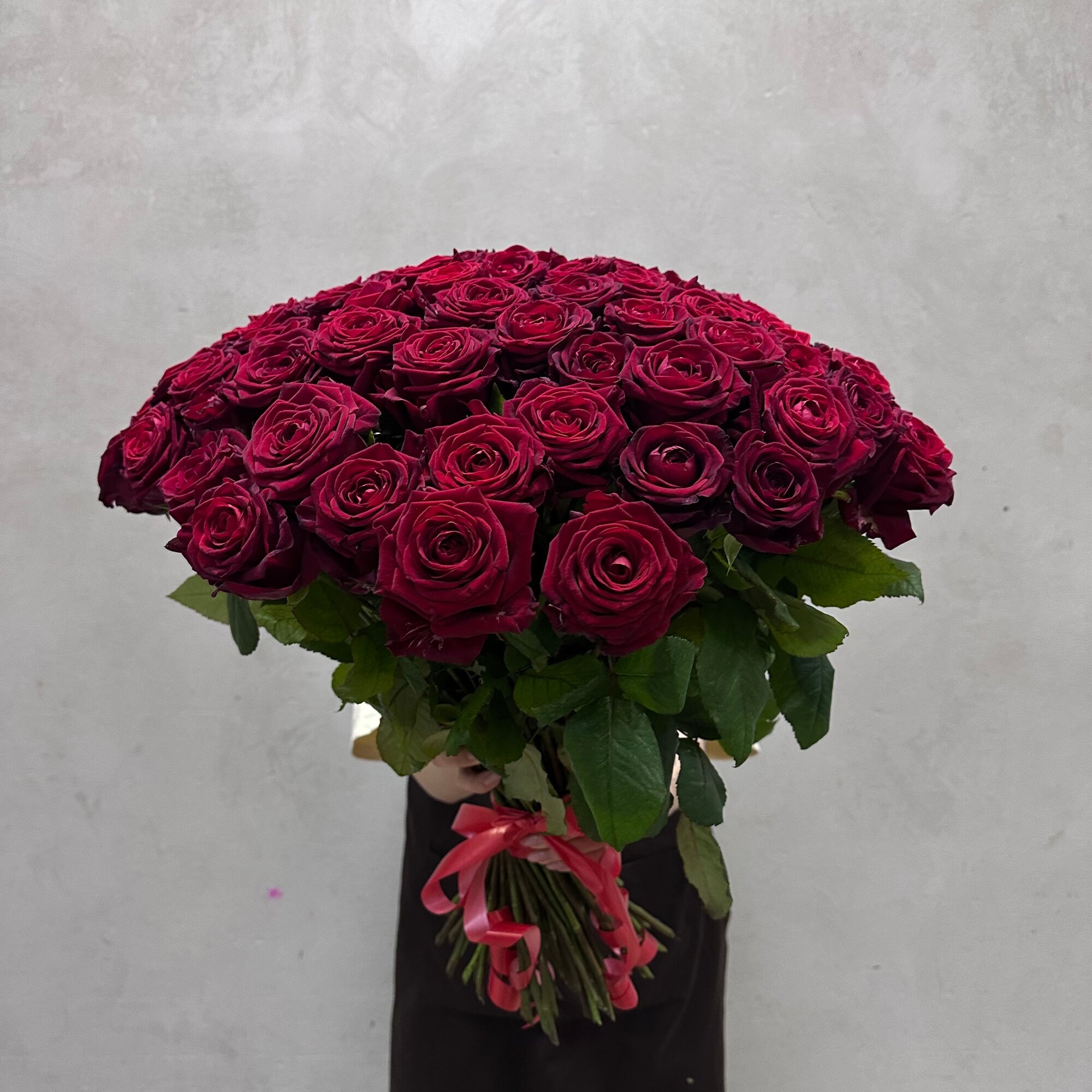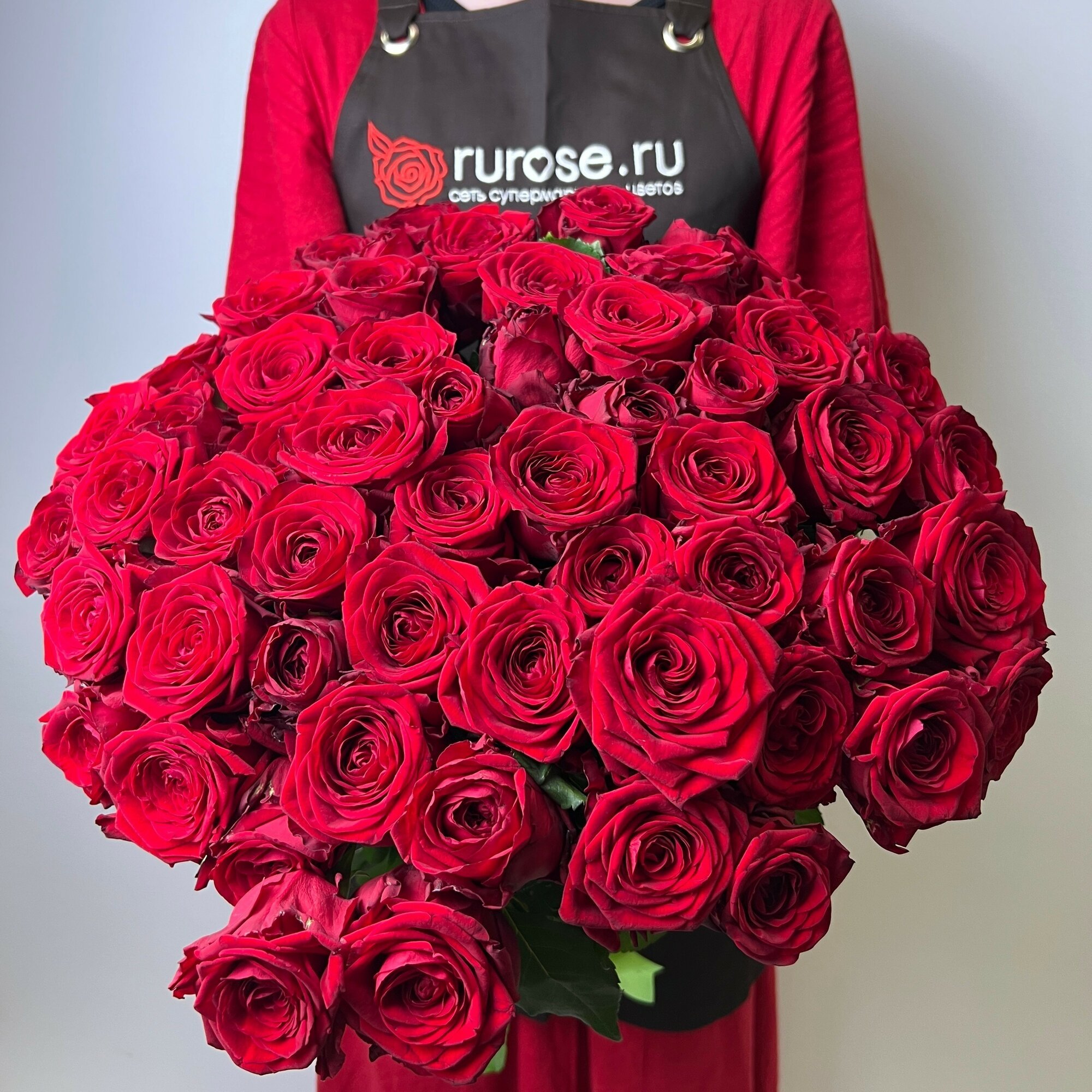 Живые цветы букет красных роз 51 шт. 50 см, "Красная страсть", сорт "Ред Наоми"
