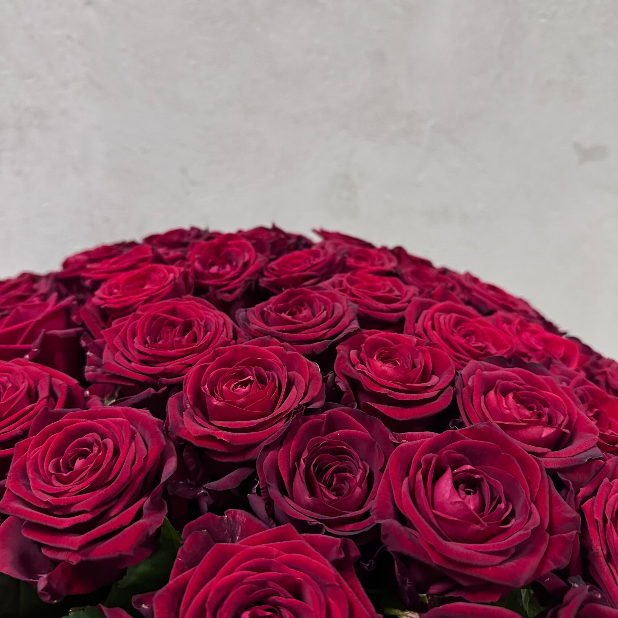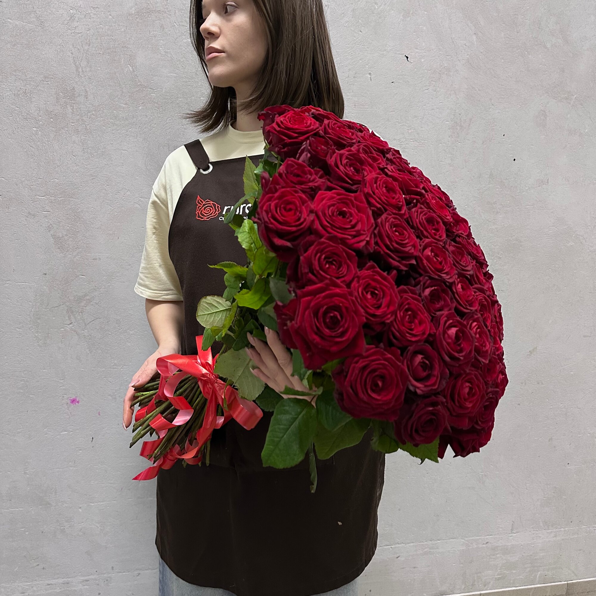 Живые цветы букет красных роз 81 шт. 50 см, "Королевская страсть", сорт - Ред Наоми