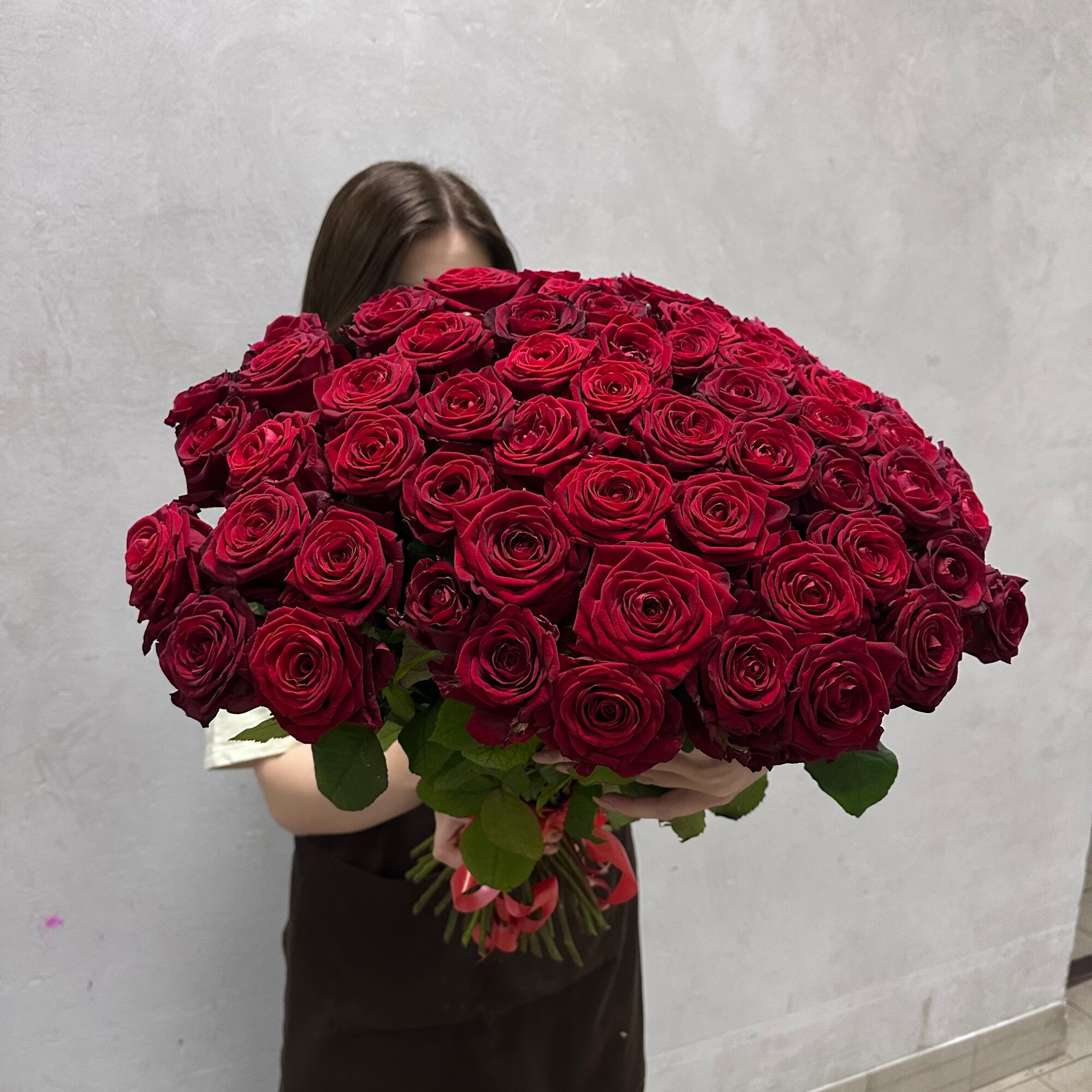 Живые цветы букет красных роз 81 шт. 60 см, "Монарх страсти", сорт - Ред Наоми