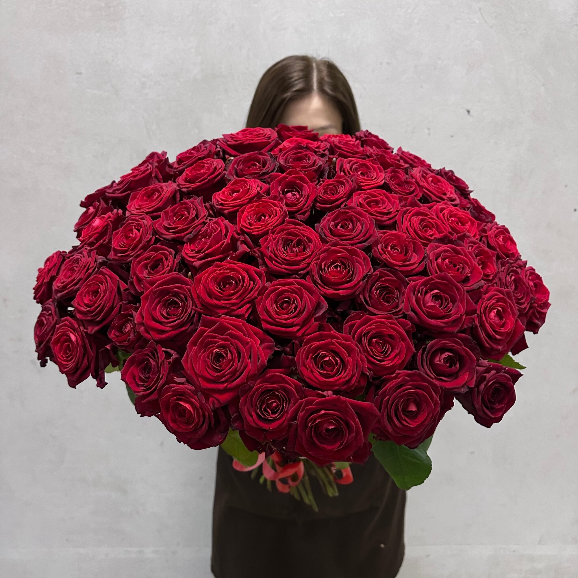 Живые цветы букет красных роз 91 шт. 50 см, "Бесконечная страсть", сорт - Ред Наоми