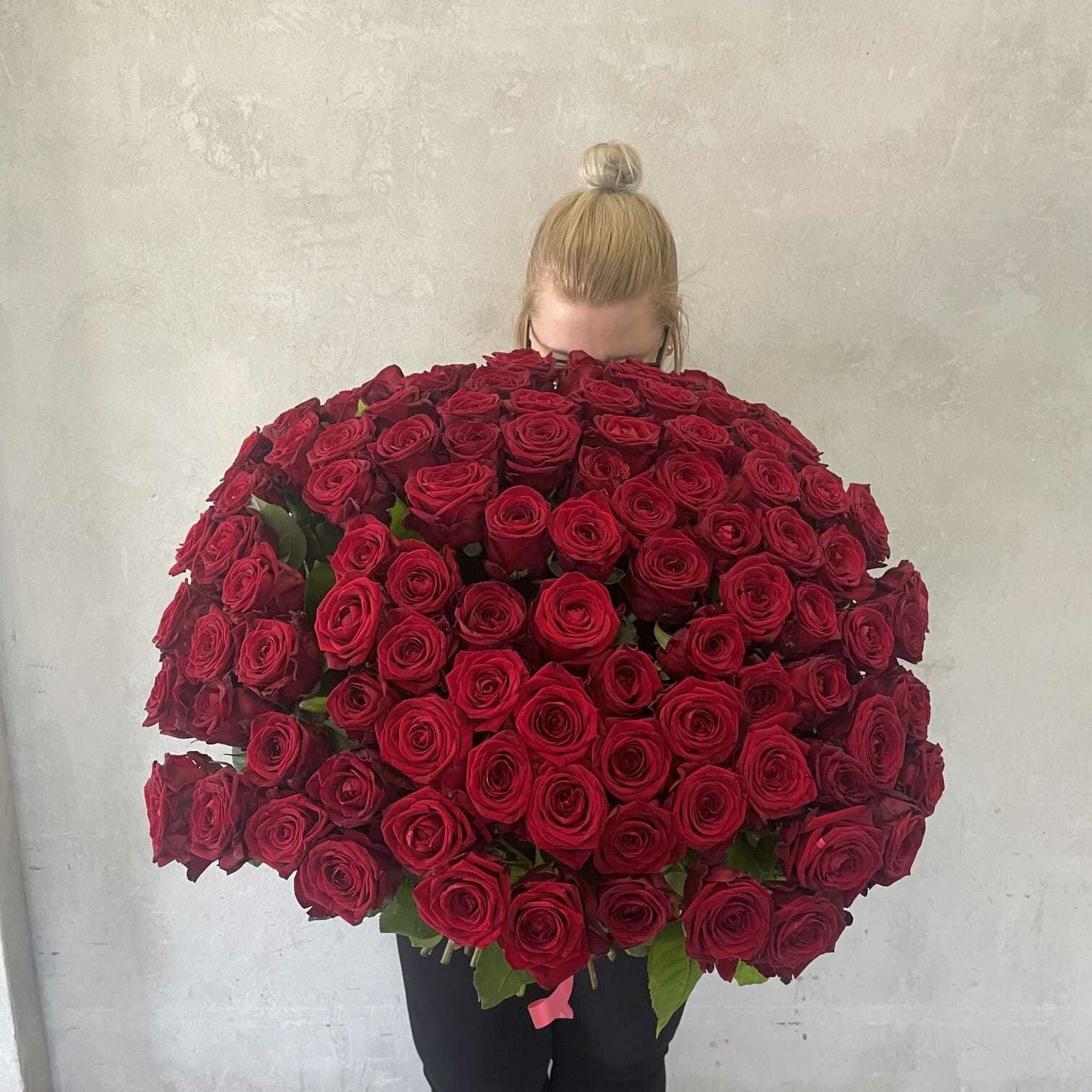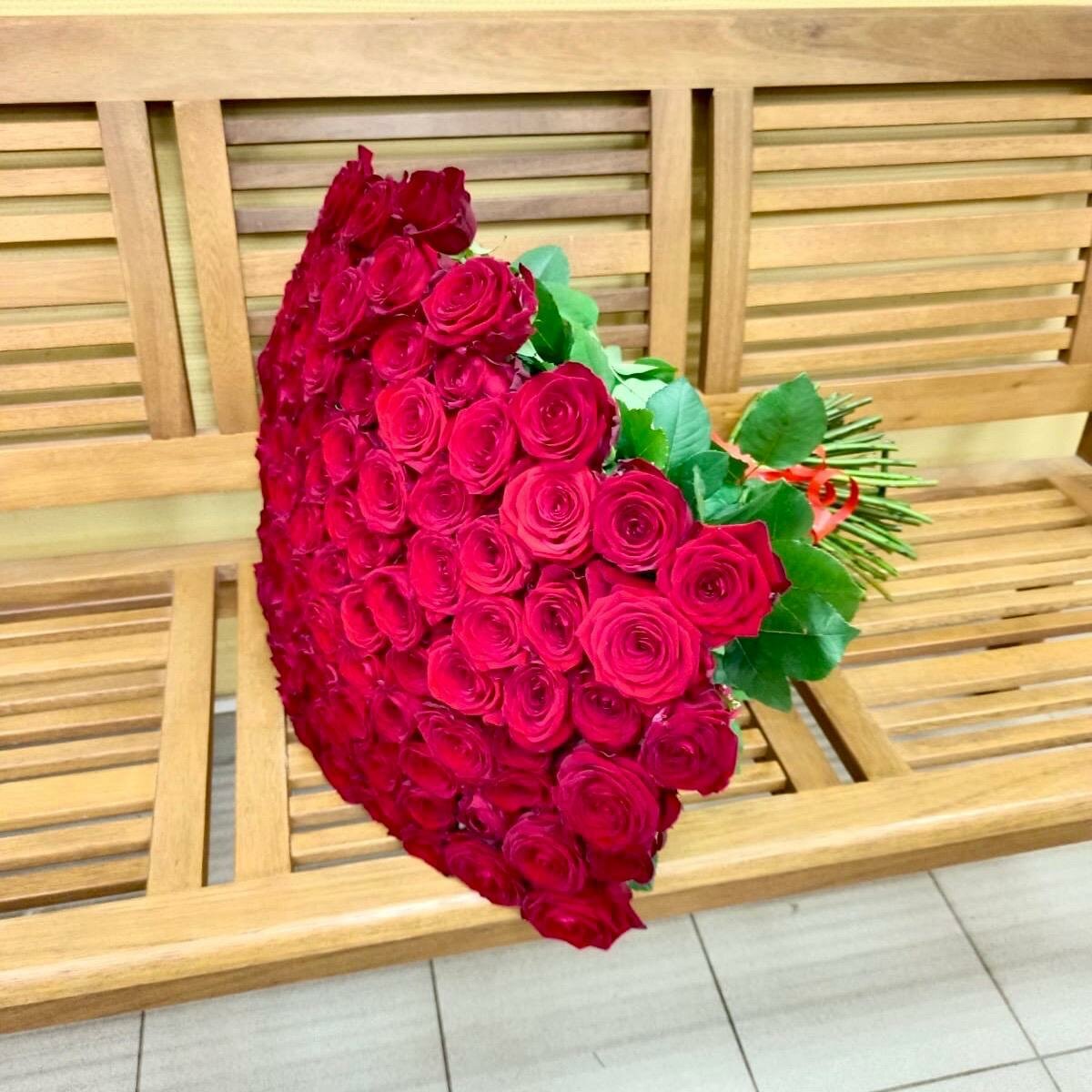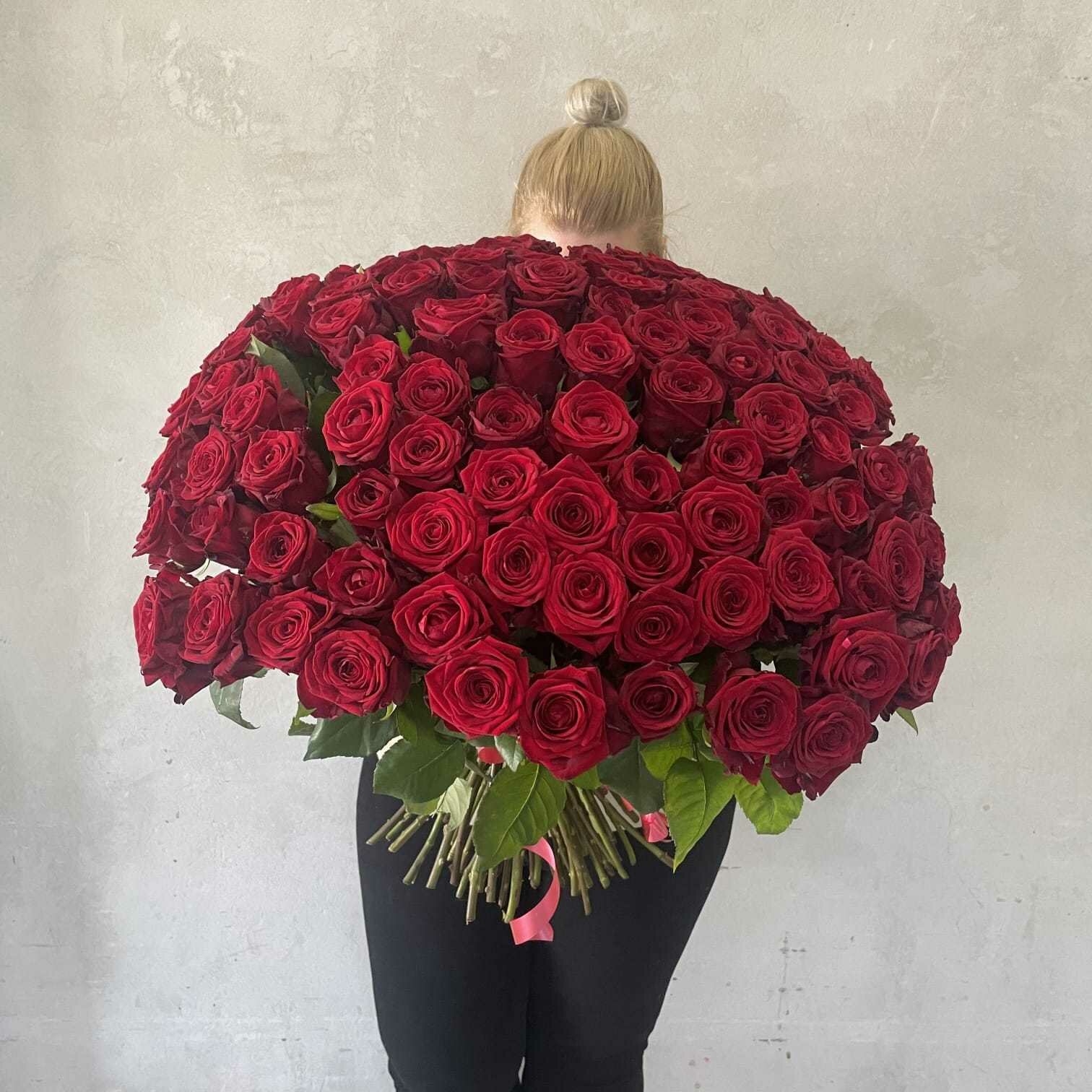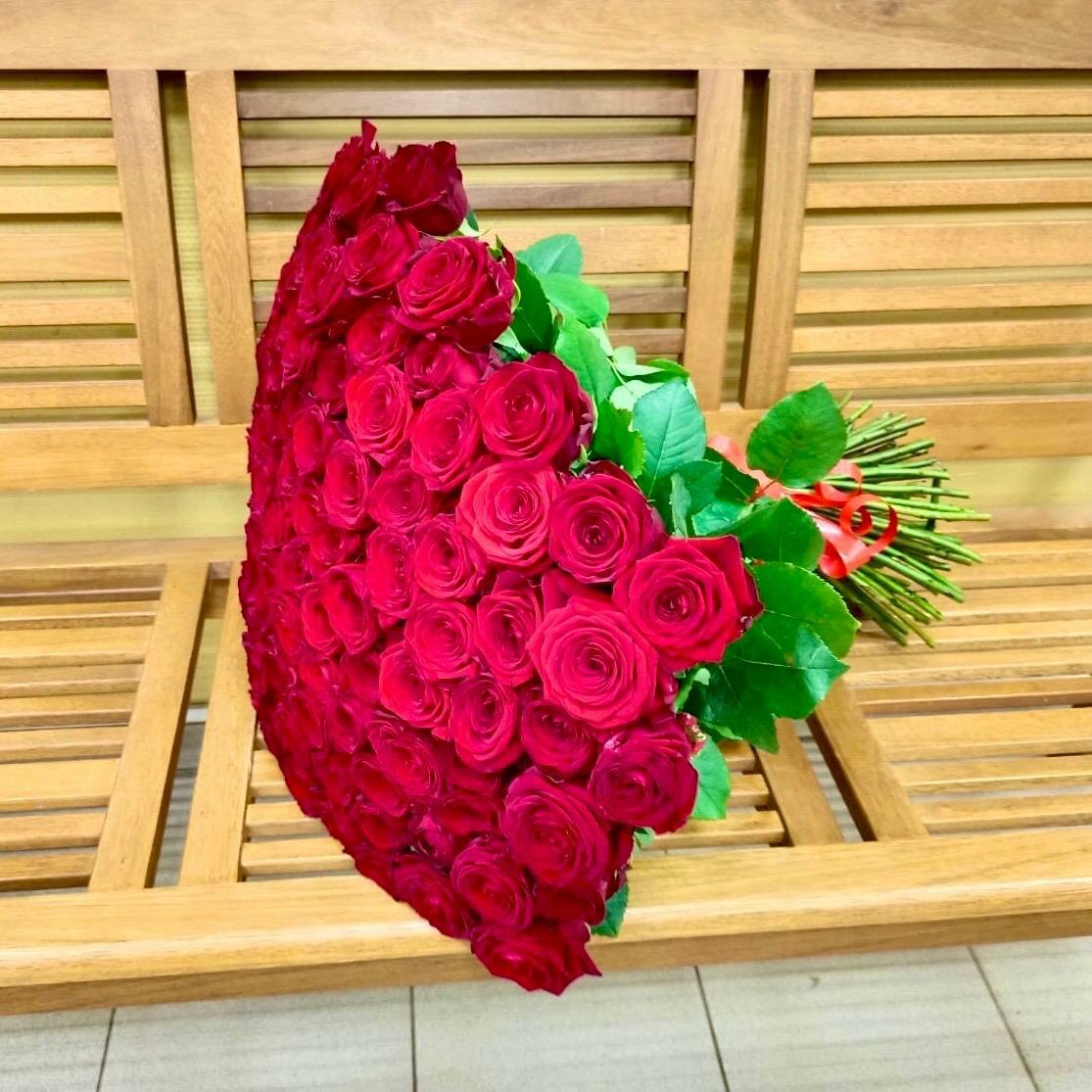 Купить Живые цветы букет красных роз 101 шт. 60 см, "Огненный бал", сорт "Ред Наоми"