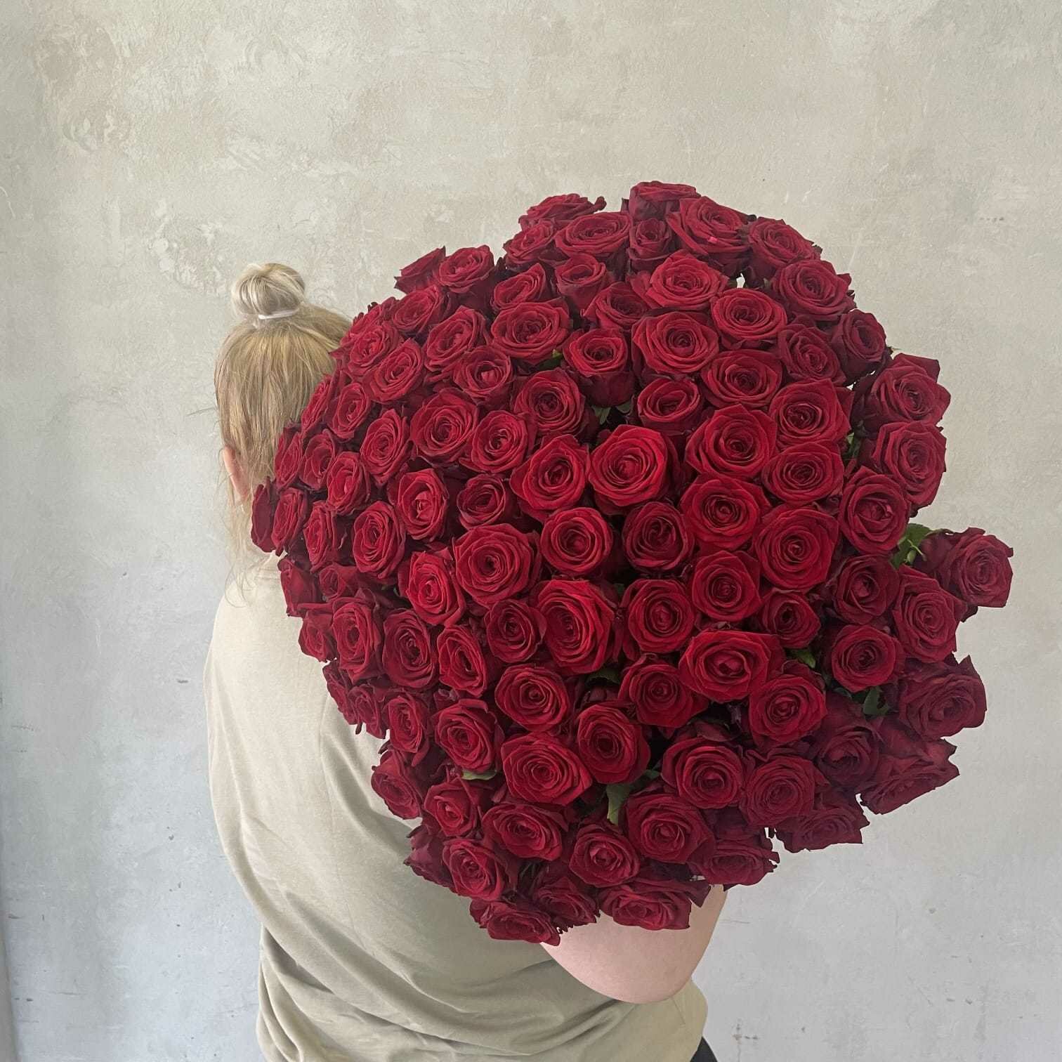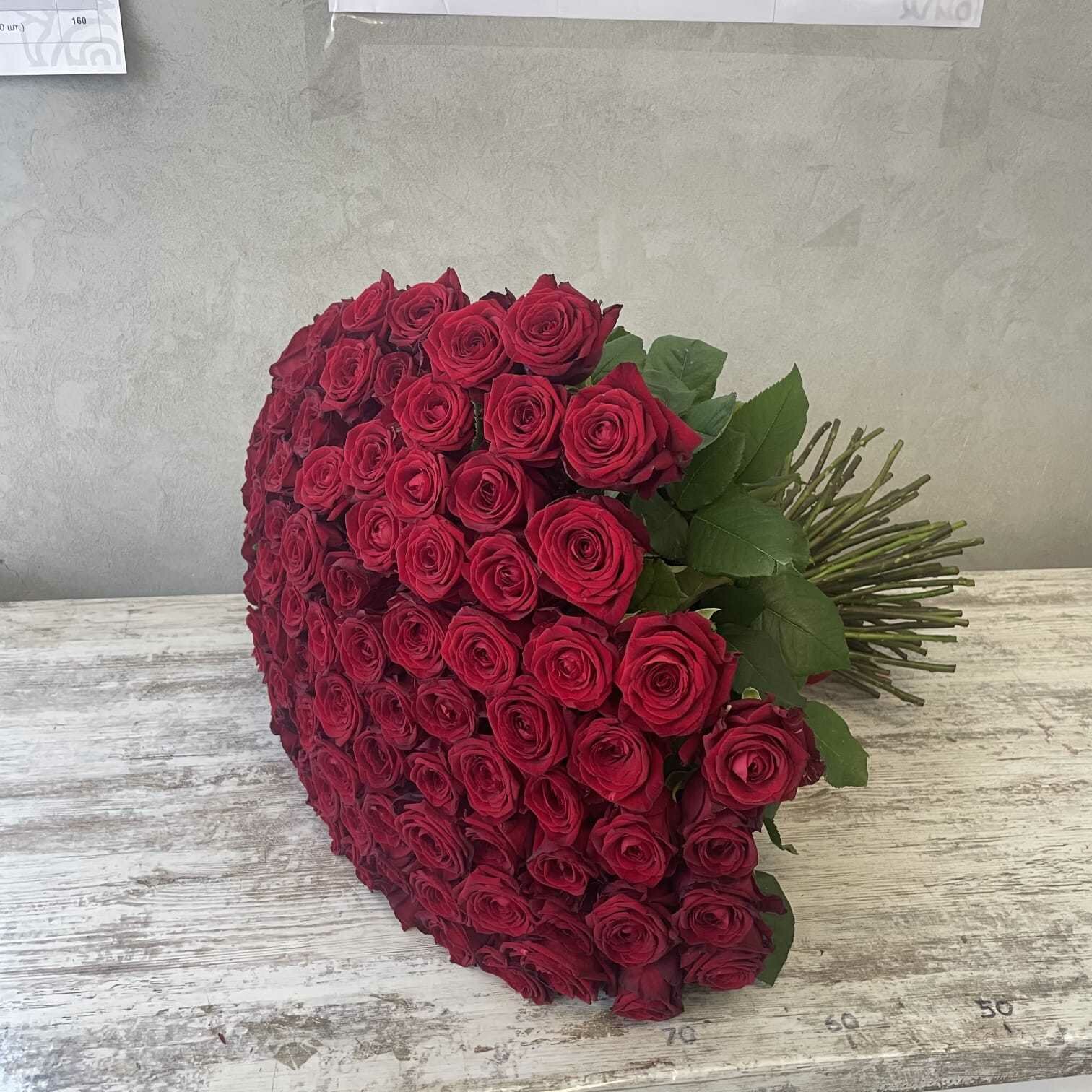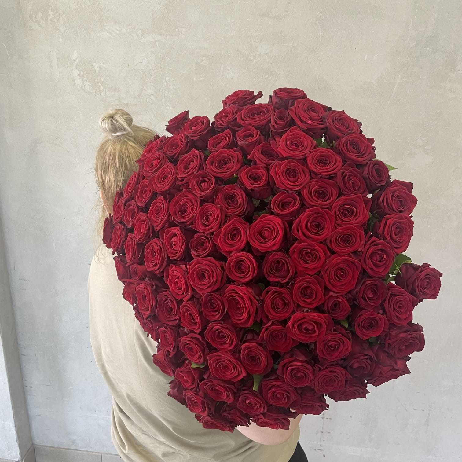 Купить Живые цветы букет красных роз 101 шт. 60 см, "Огненный бал", сорт "Ред Наоми"