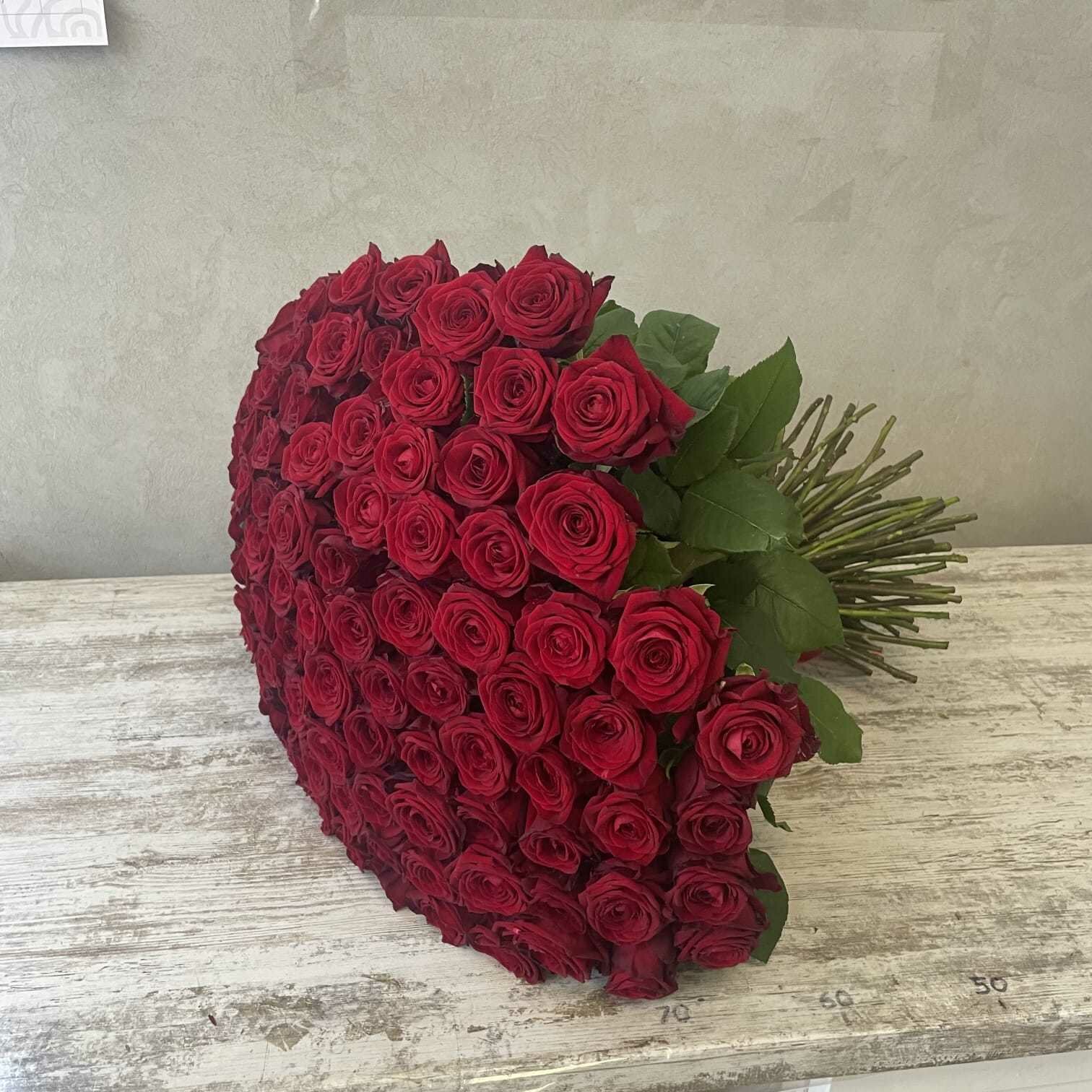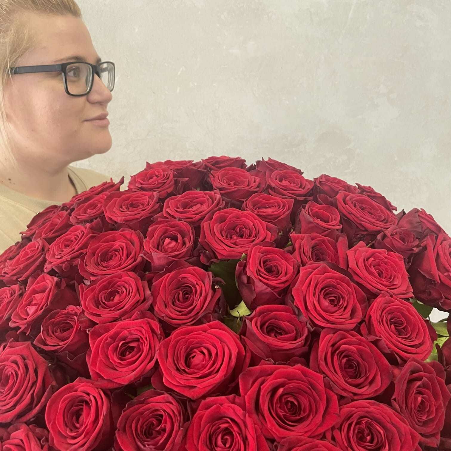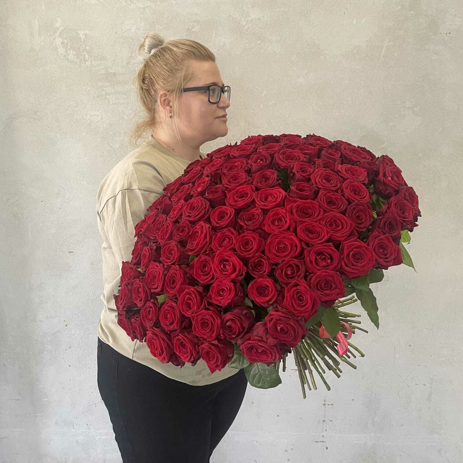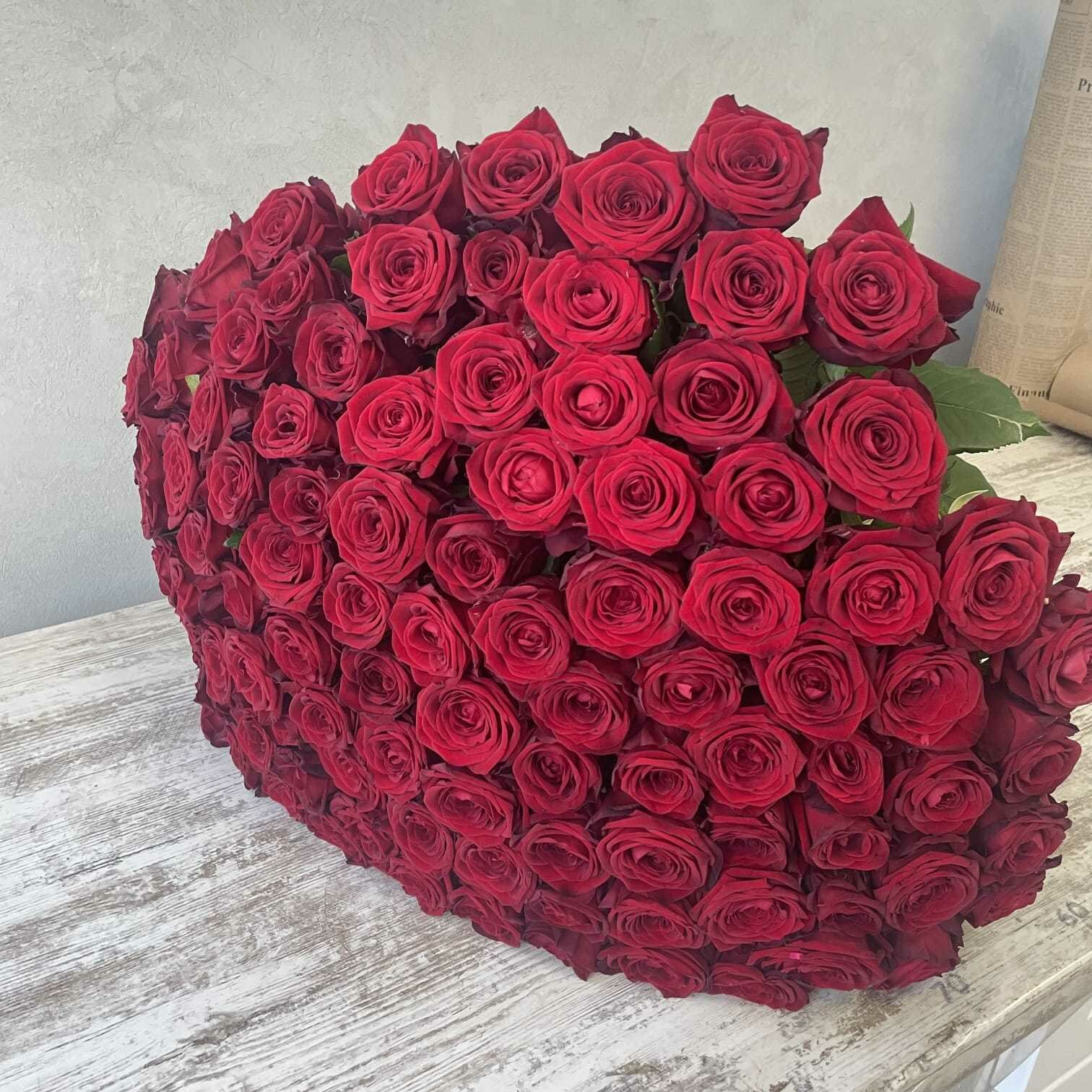 Купить Живые цветы букет красных роз 101 шт. 60 см, "Огненный бал", сорт "Ред Наоми"