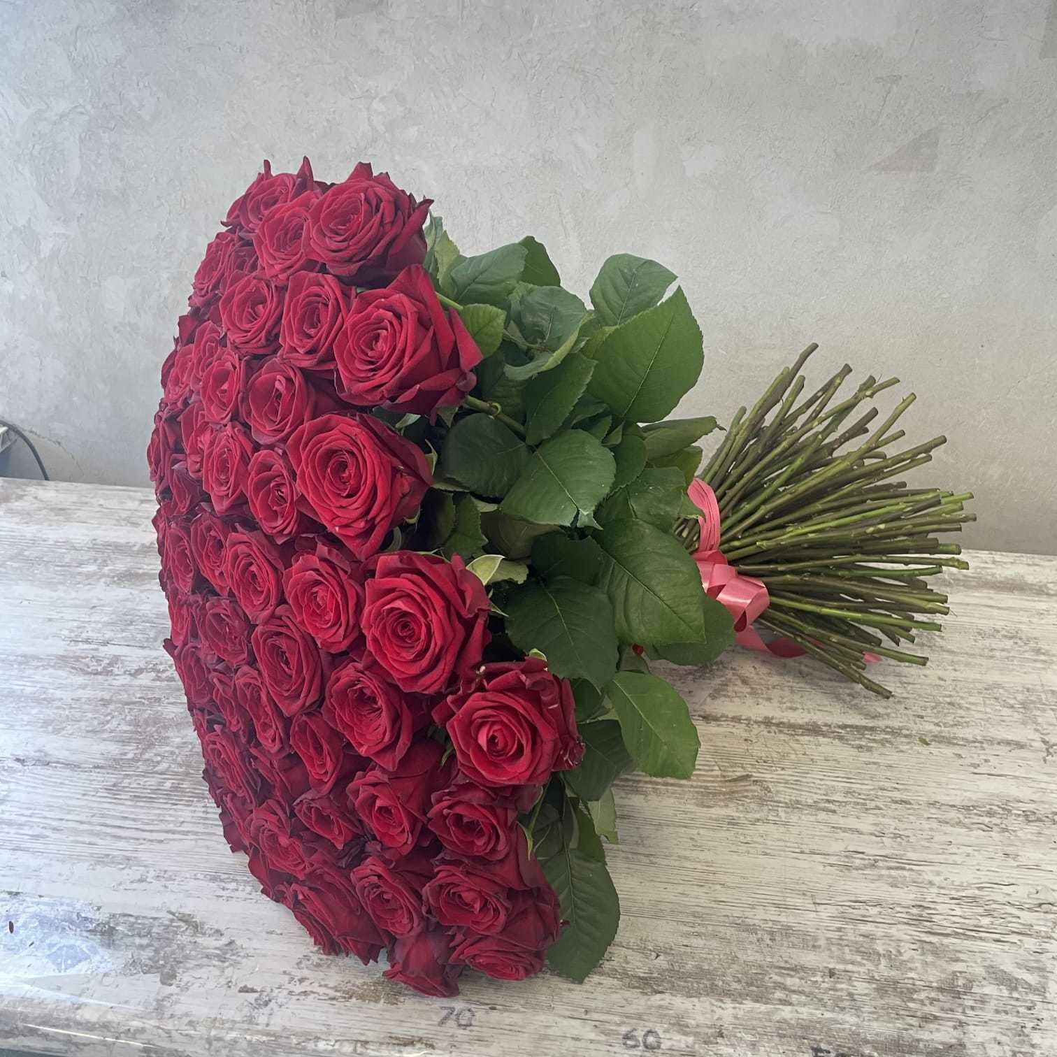 Живые цветы букет красных роз 71 шт. 60 см, сорт "Ред Наоми"