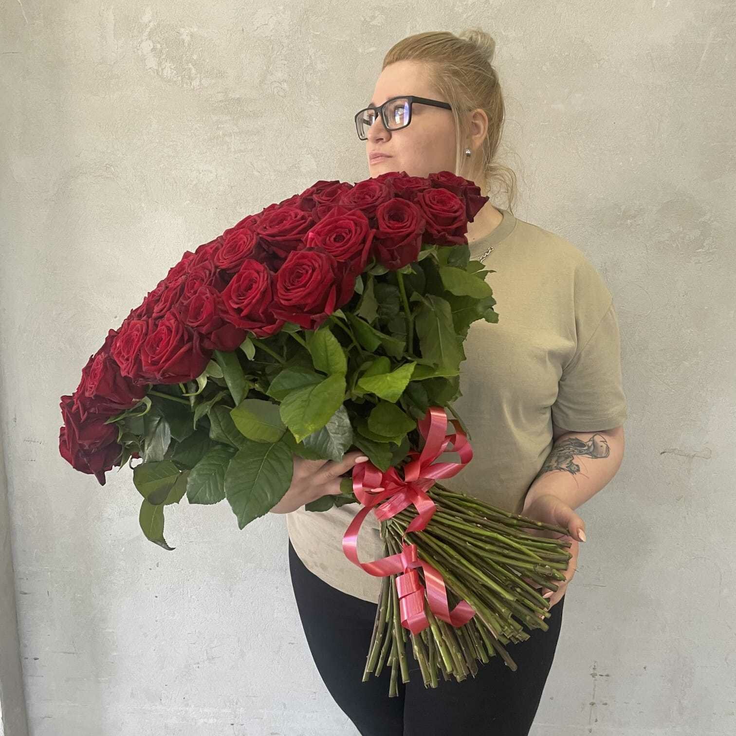 Живые цветы букет красных роз 41 шт. 50 см, "Одержимость", сорт - Ред Наоми