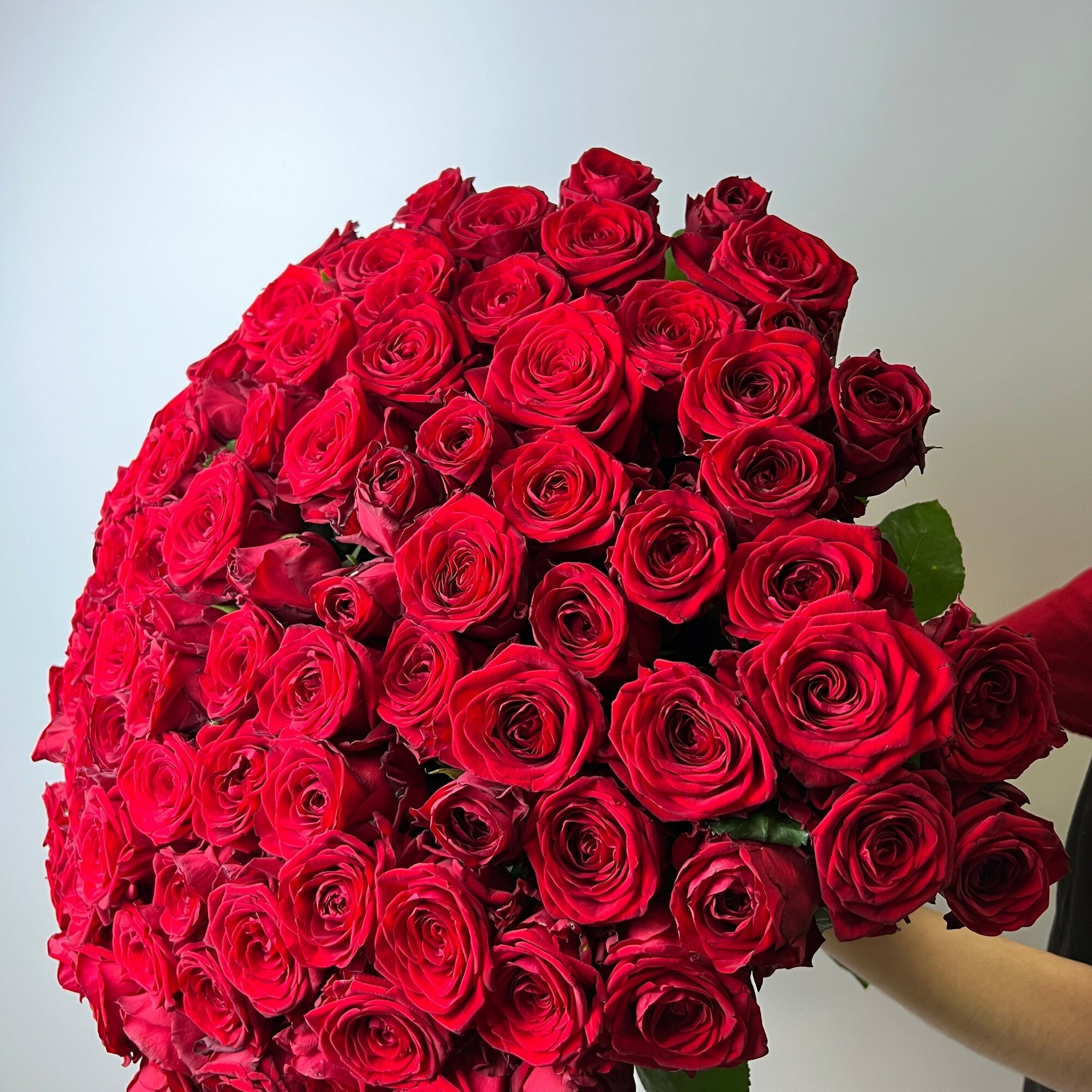 Живые цветы букет красных роз 91 шт. 50 см, "Бесконечная страсть", сорт - Ред Наоми