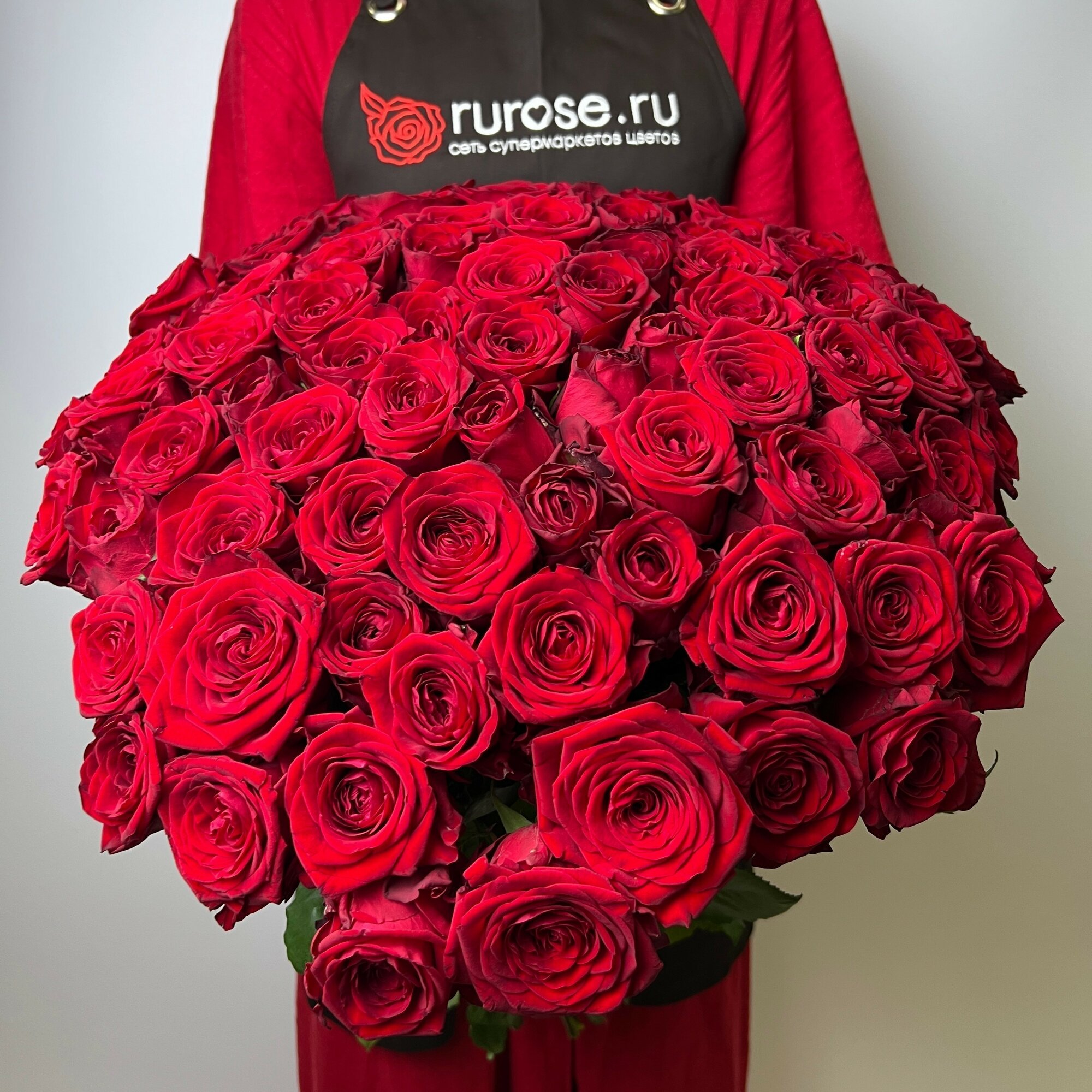 Живые цветы букет красных роз 101 шт. 60 см, "Огненный бал", сорт "Ред Наоми"