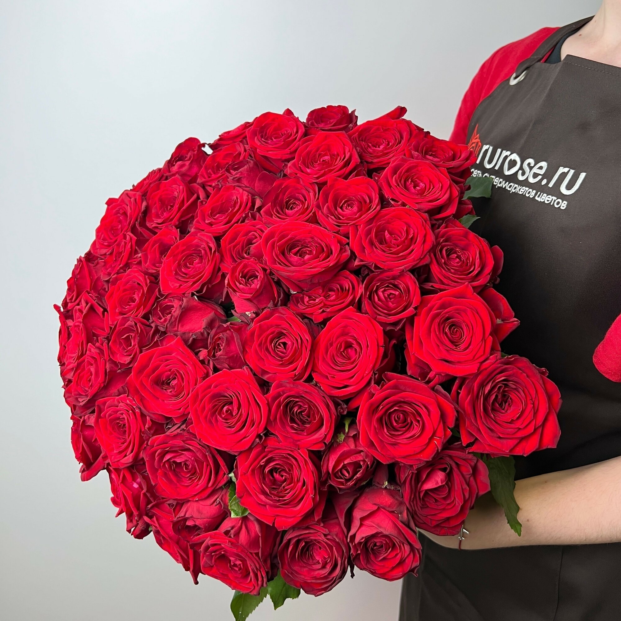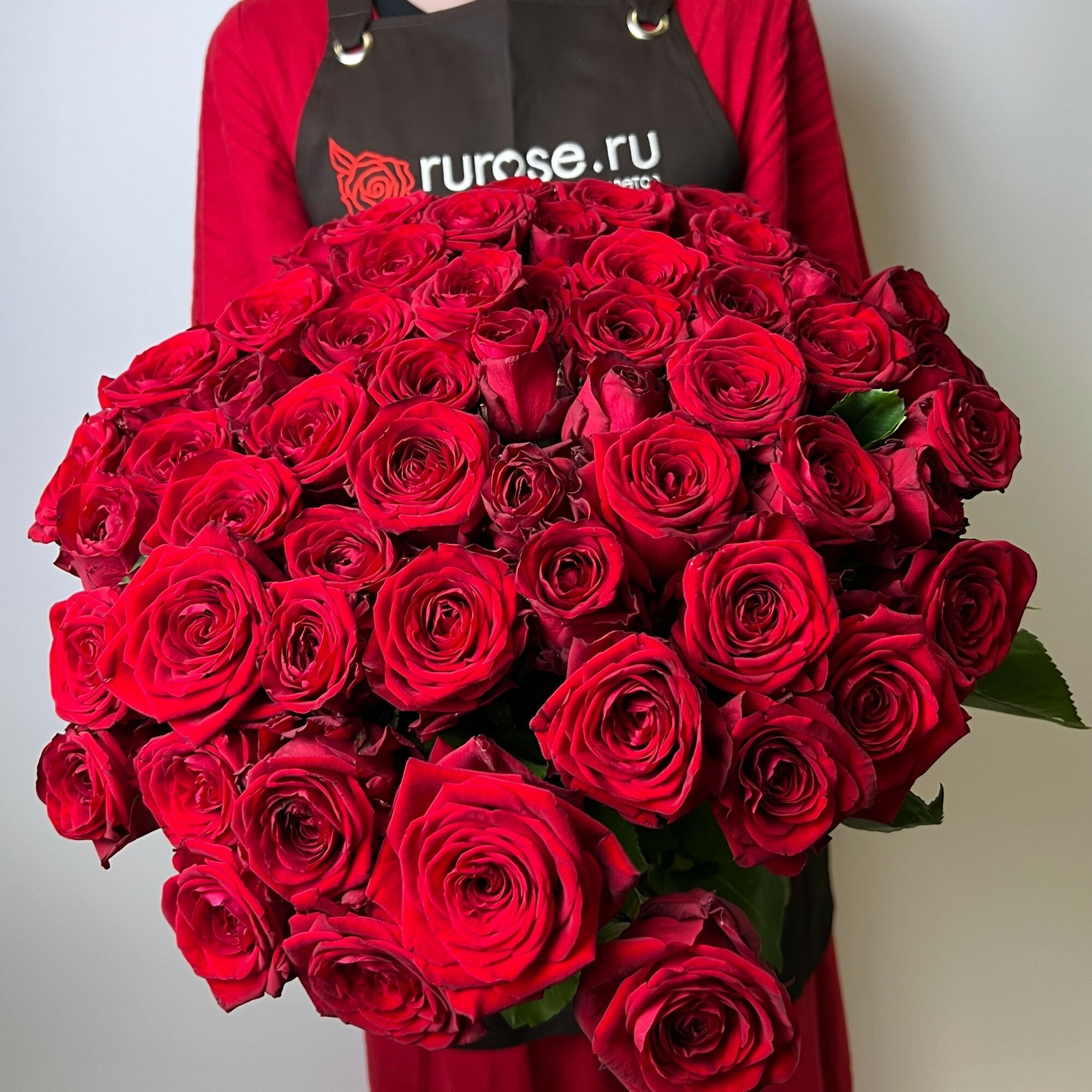 Живые цветы букет красных роз 91 шт. 50 см, "Бесконечная страсть", сорт - Ред Наоми