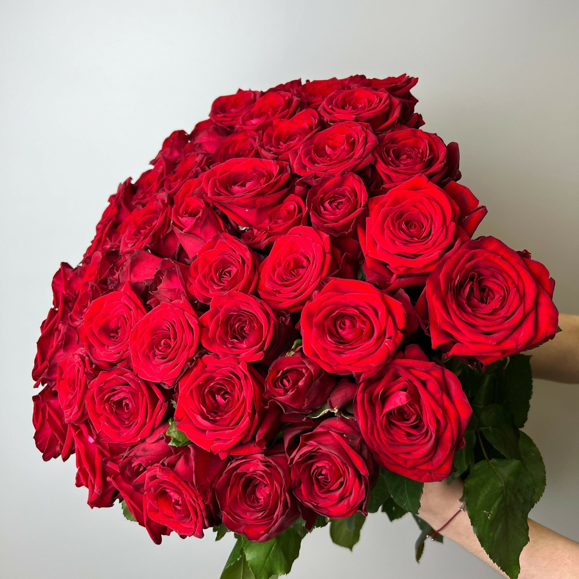 Живые цветы букет красных роз 51 шт. 50 см, "Красная страсть", сорт "Ред Наоми"