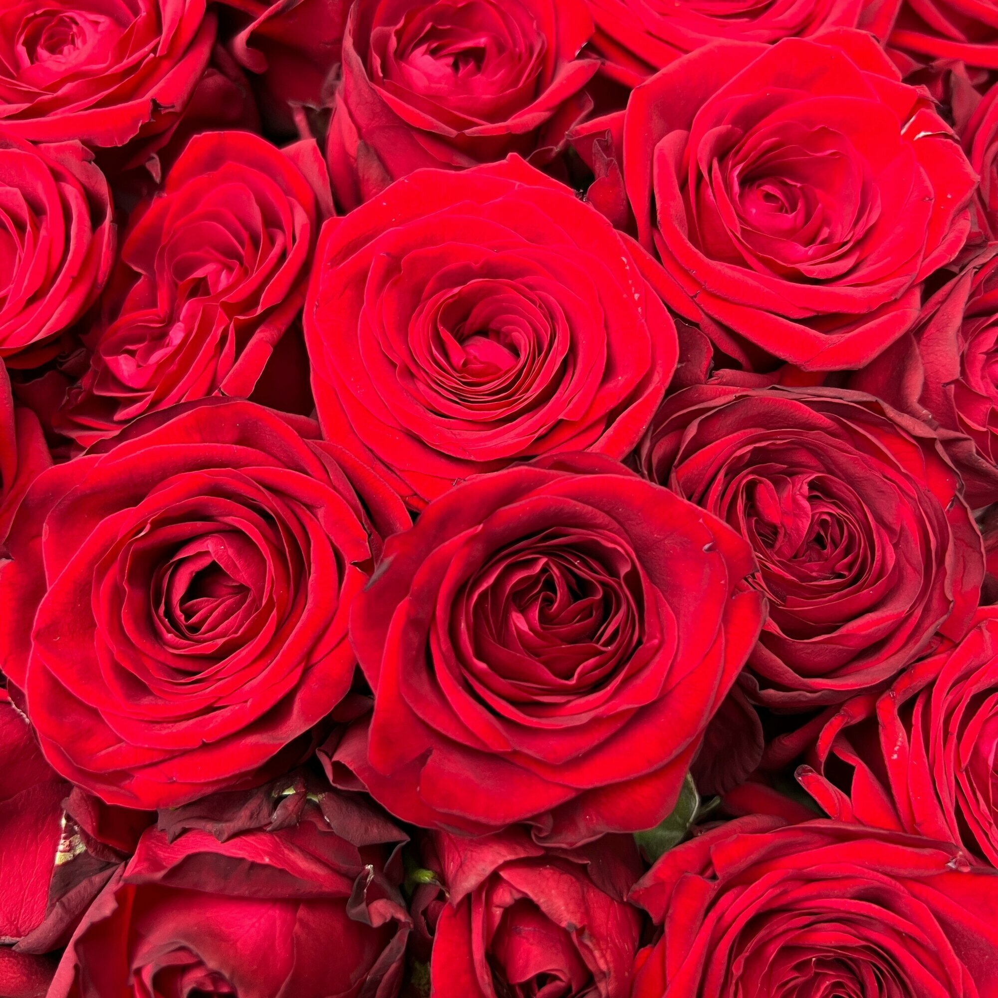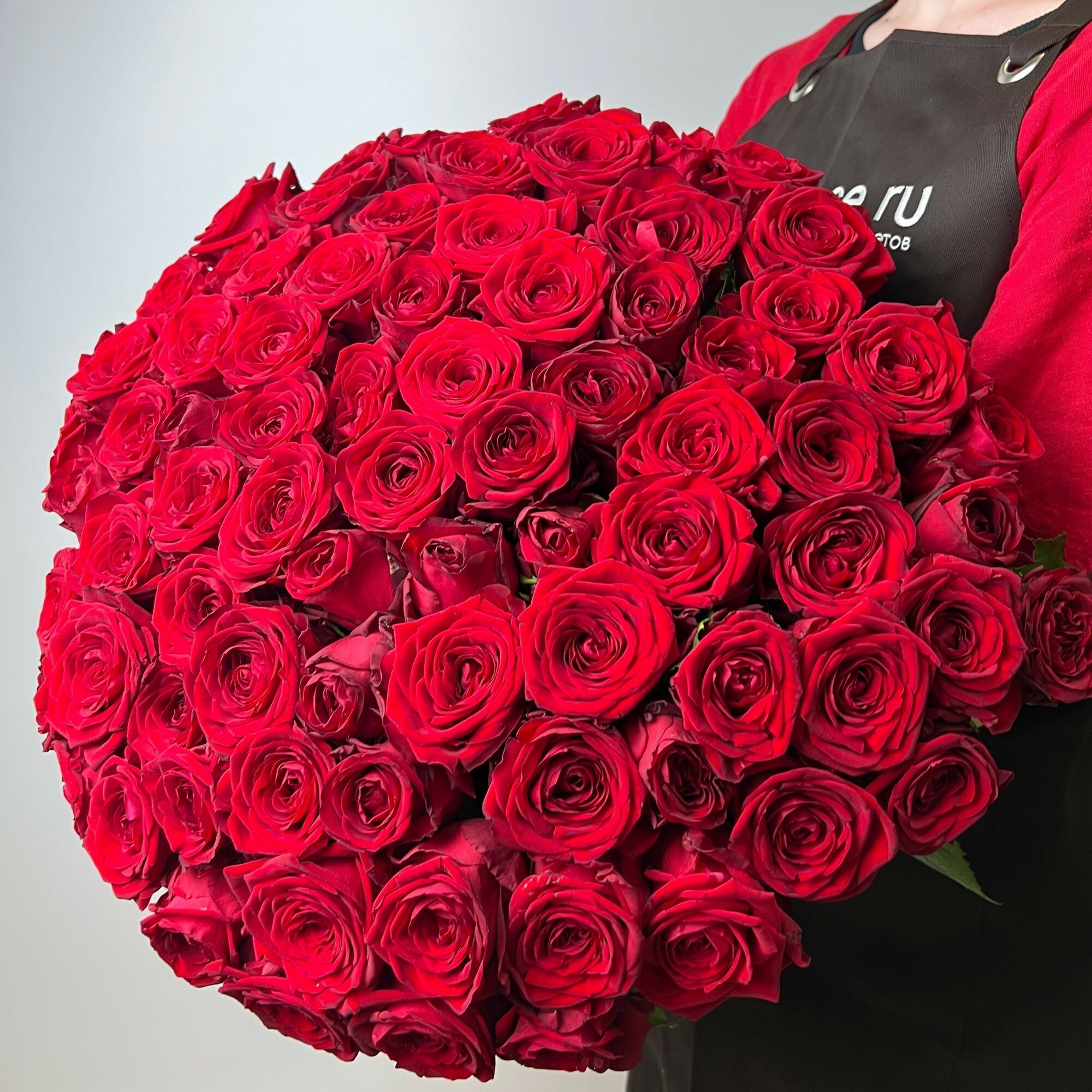 Живые цветы букет красных роз 101 шт. 60 см, "Огненный бал", сорт "Ред Наоми"