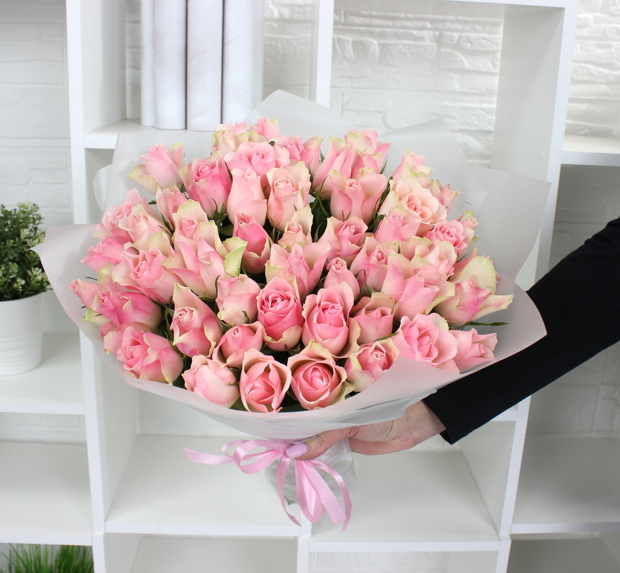 Купить 51 нежно-розовая роза 40см