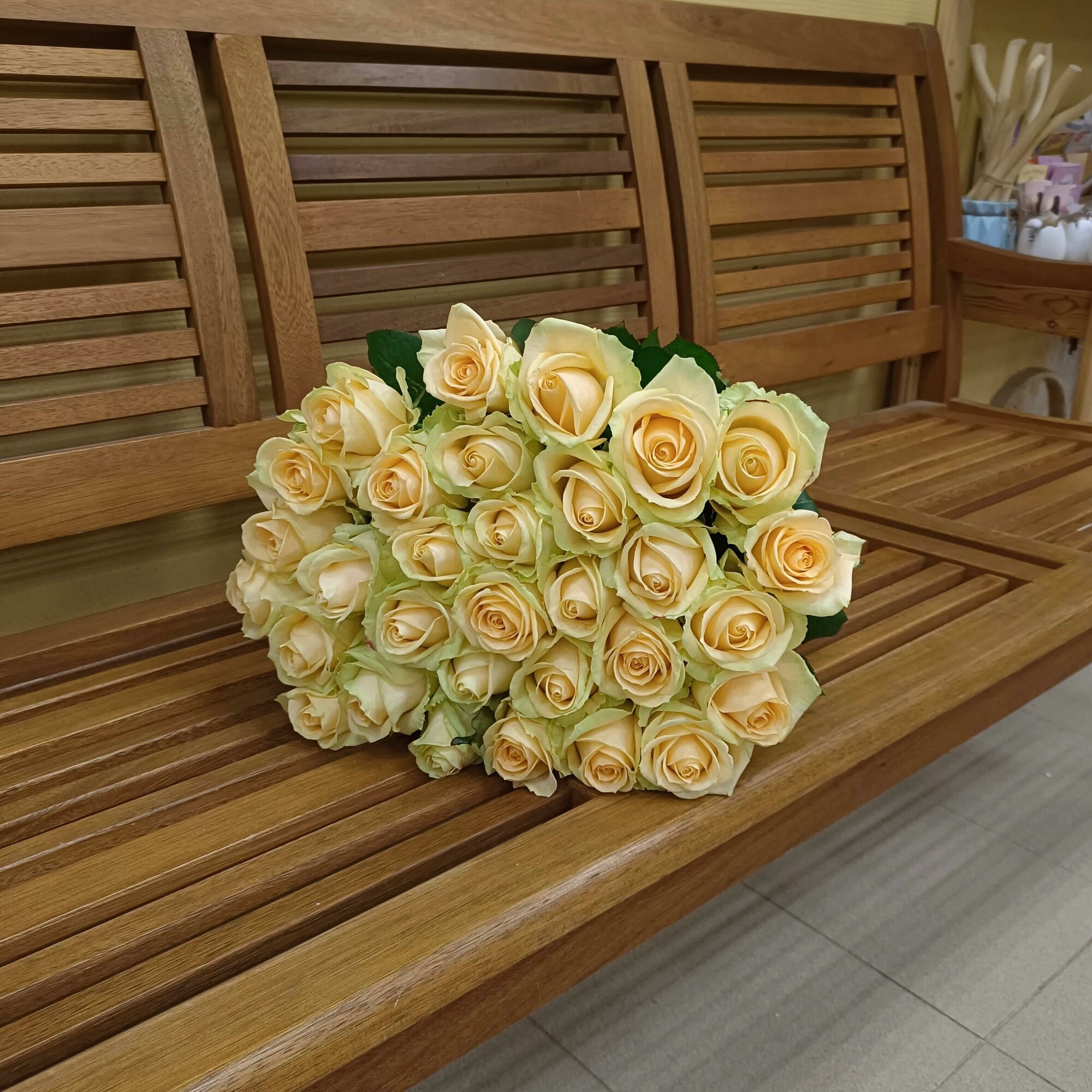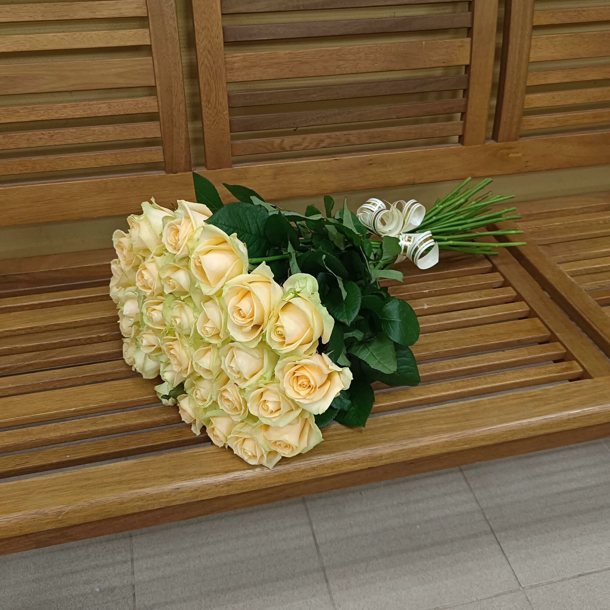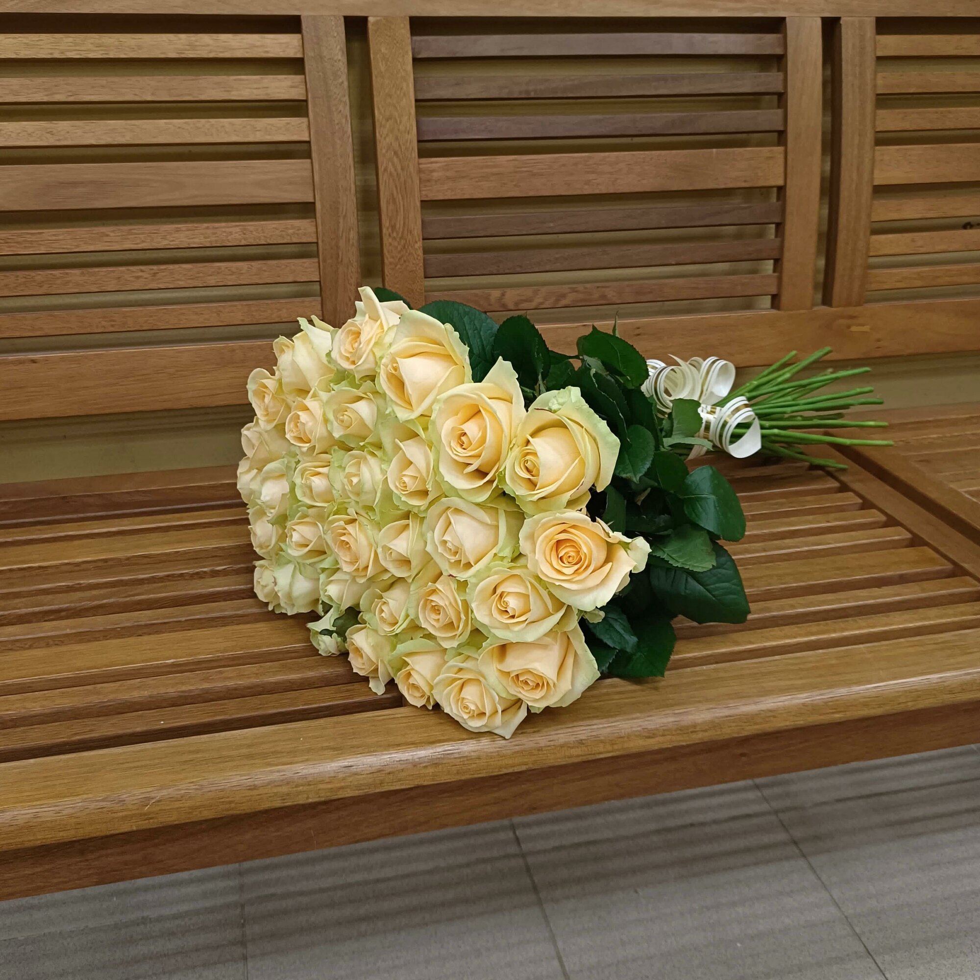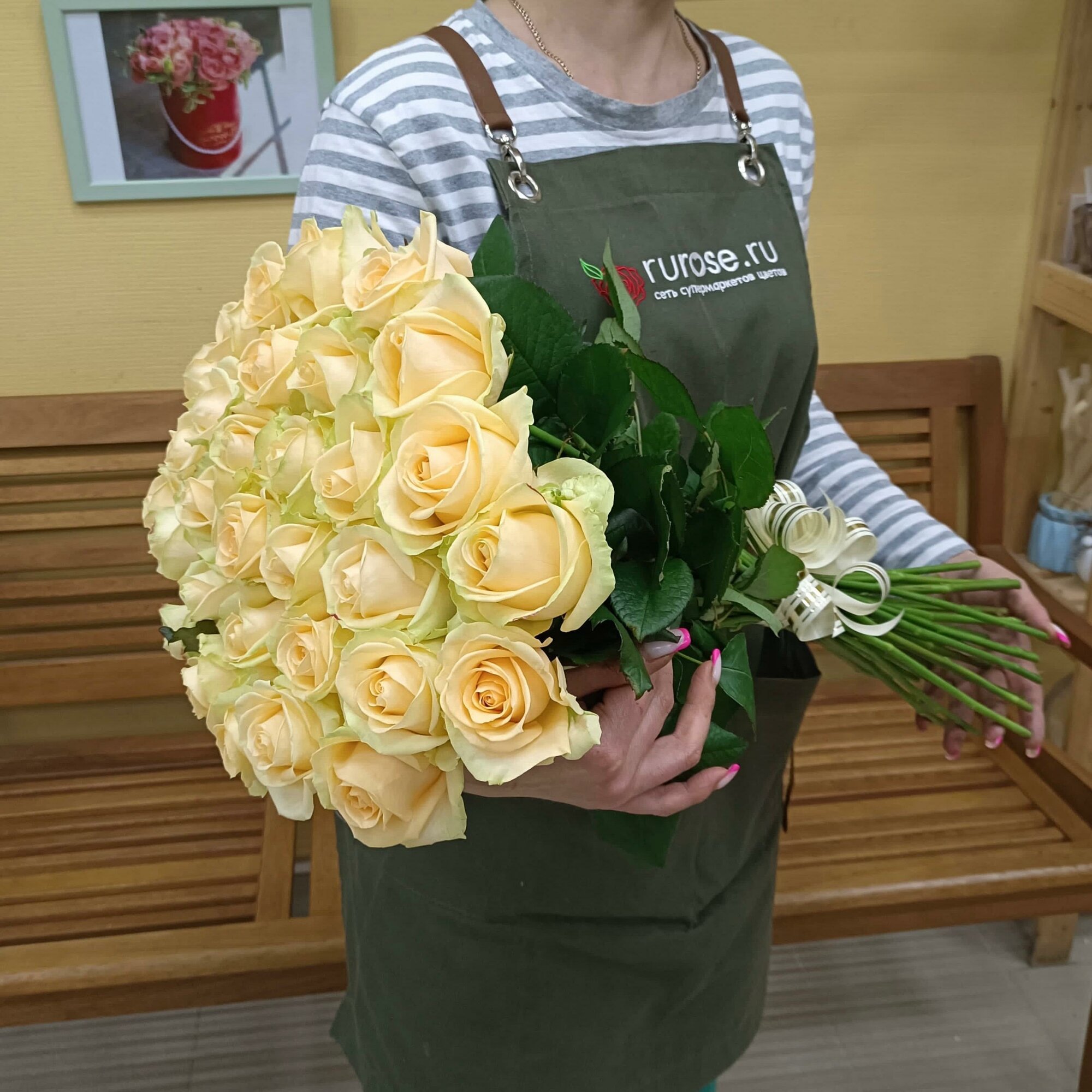 Купить Живые цветы букет из 31 кремовой розы 60 см "Перламутровая страсть", сорт - "Пич Аваланж"