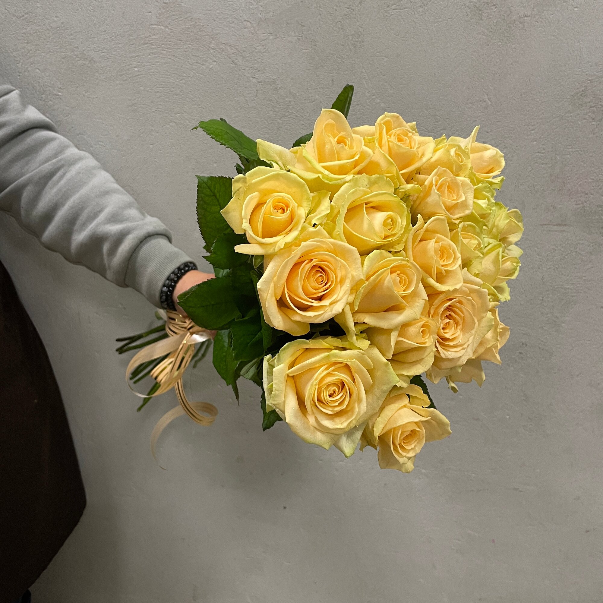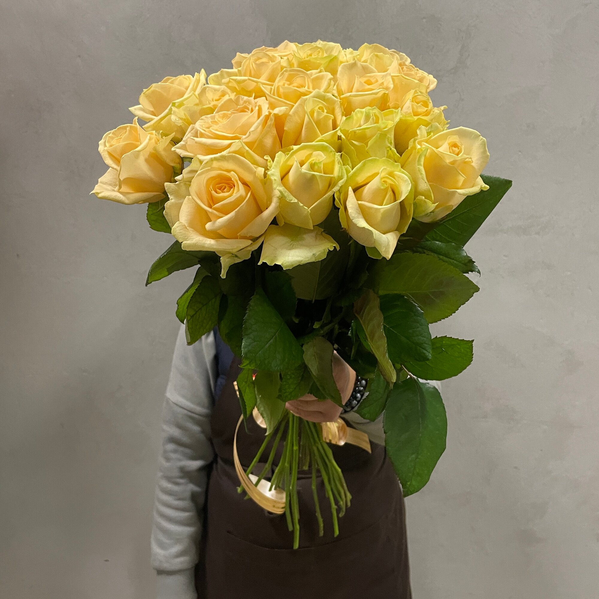 Живые цветы букет кремовых роз 51 шт. 40 см. "Мы вместе", бежевый, Rurose