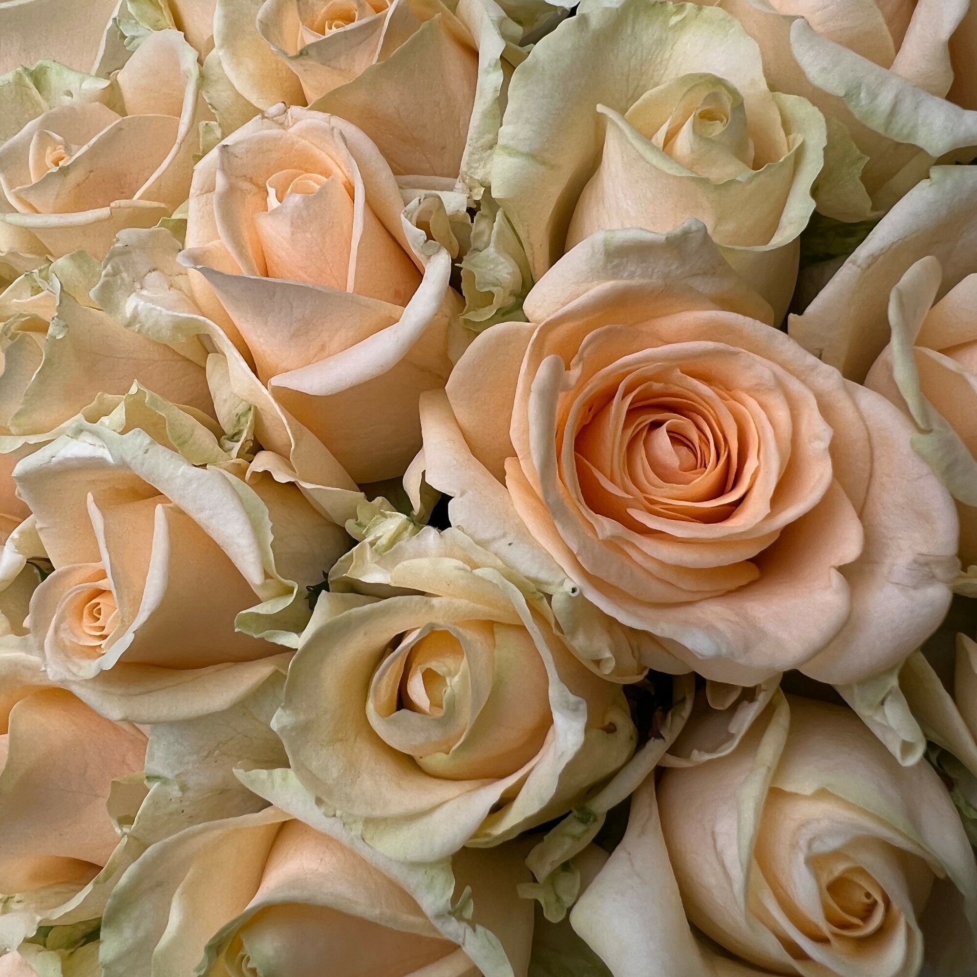 Живые цветы букет из 61 кремовой розы 60 см "Кремовый рай", сорт - "Пич Аваланж"