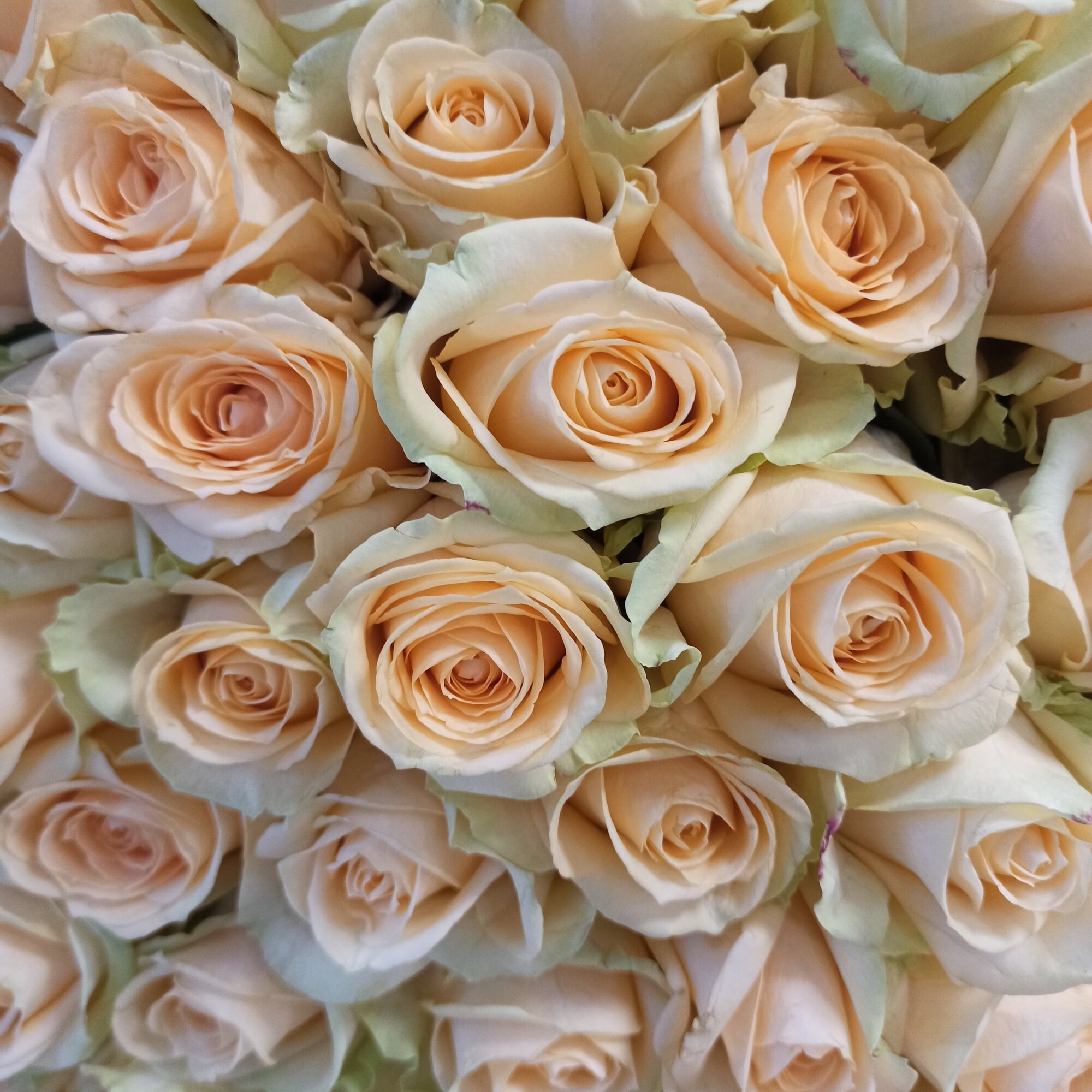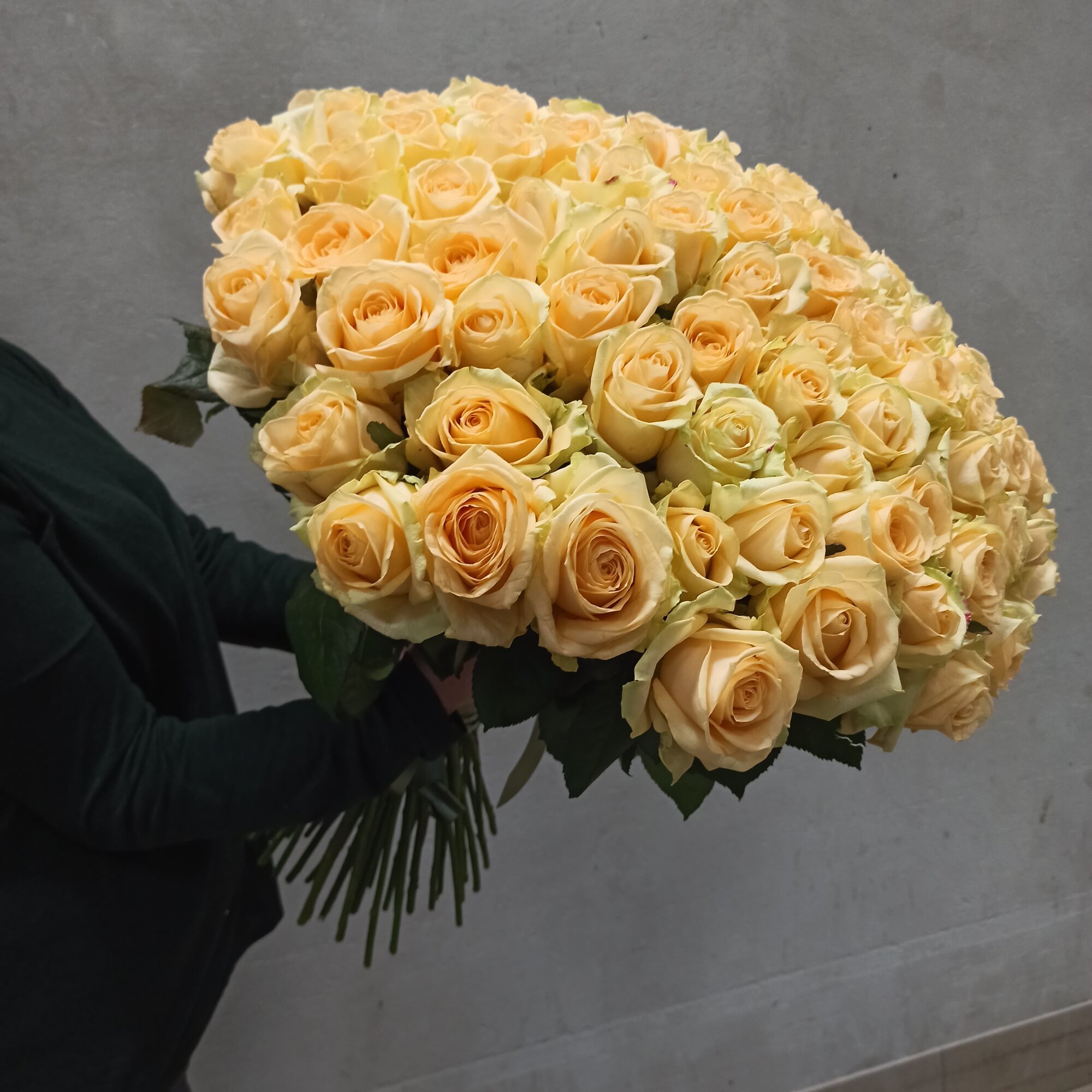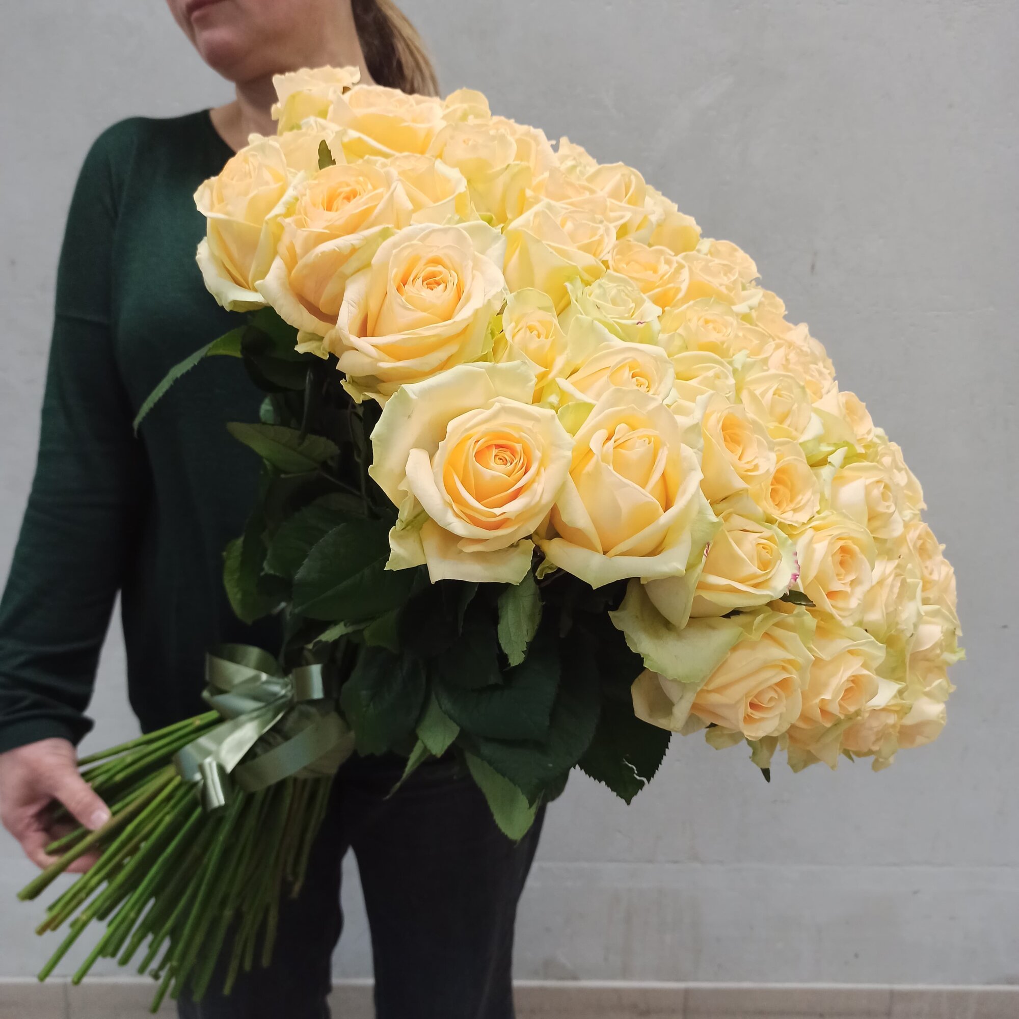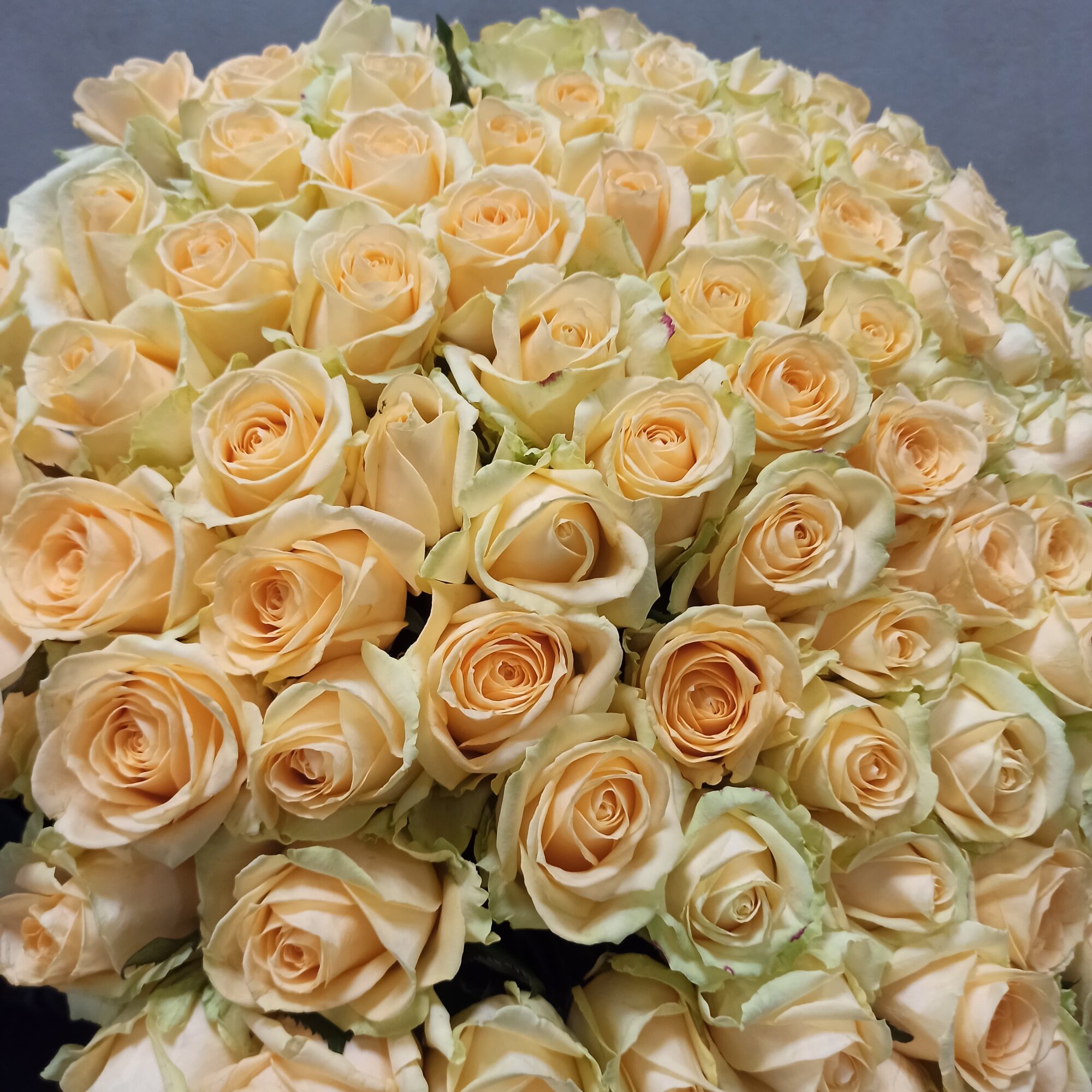 Купить Живые цветы букет из 101 кремовой розы 60 см "Цветочный Потоп", сорт - "Пич Аваланж"