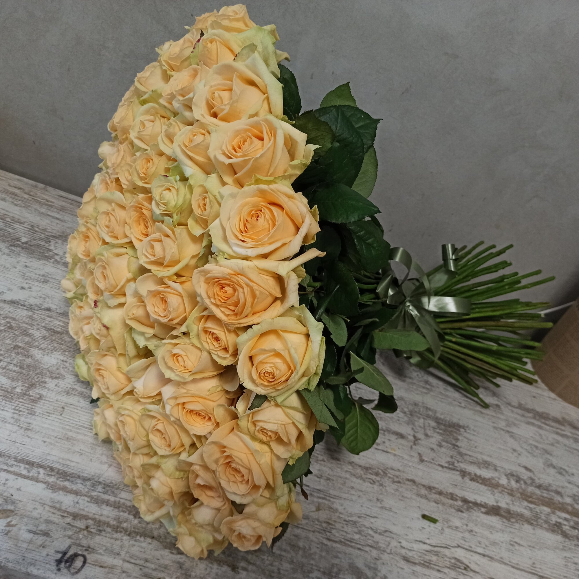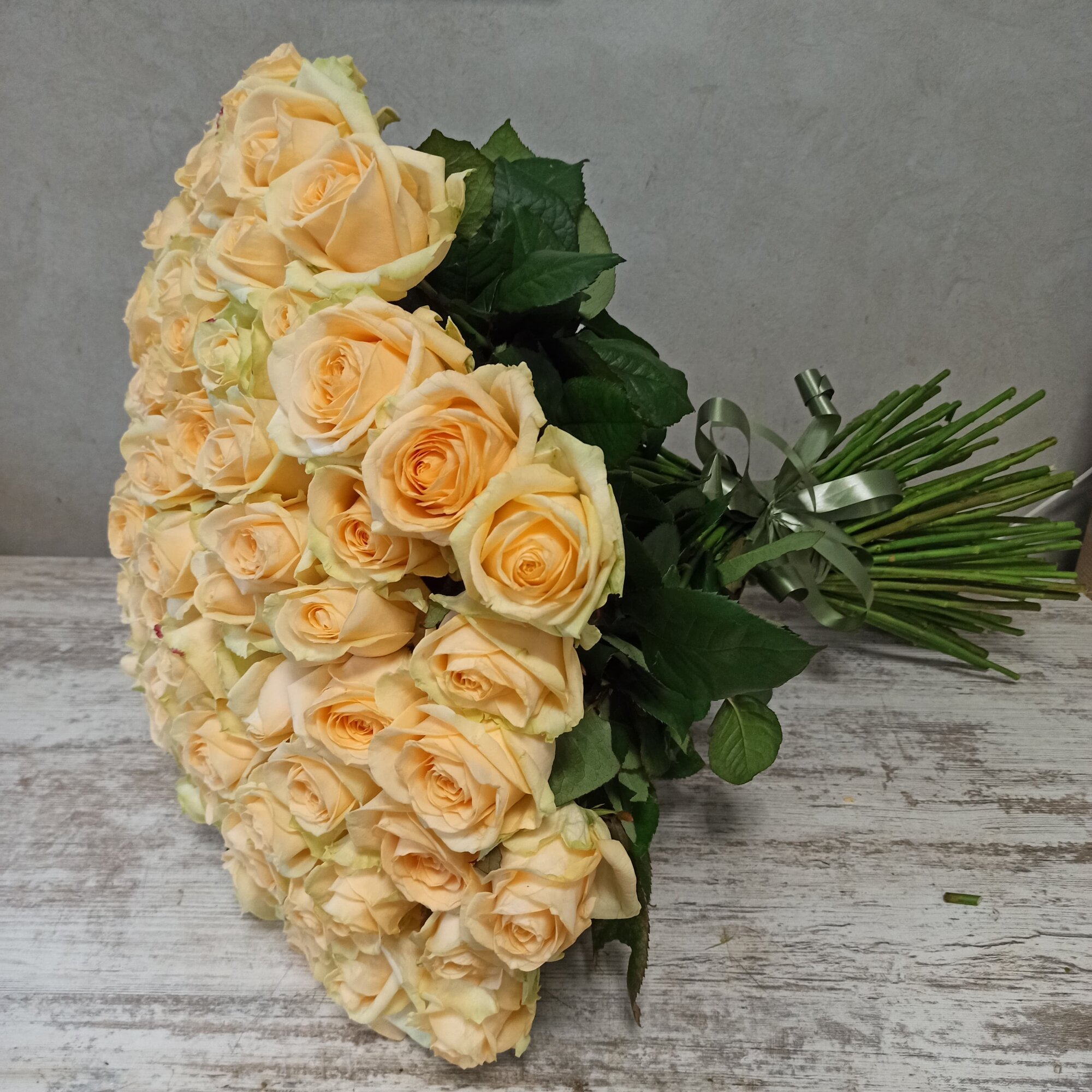 Живые цветы букет из 61 кремовой розы 60 см "Кремовый рай", сорт - "Пич Аваланж"