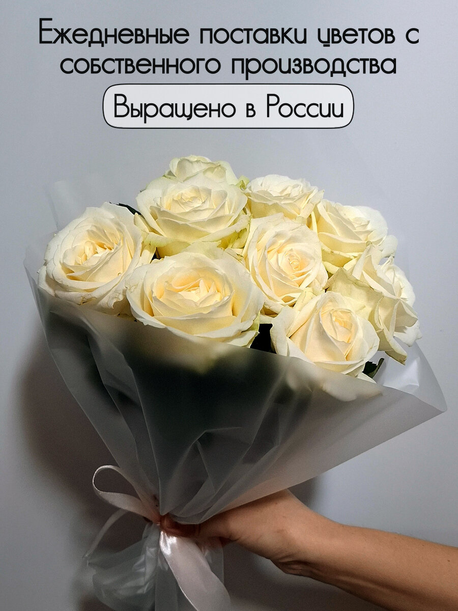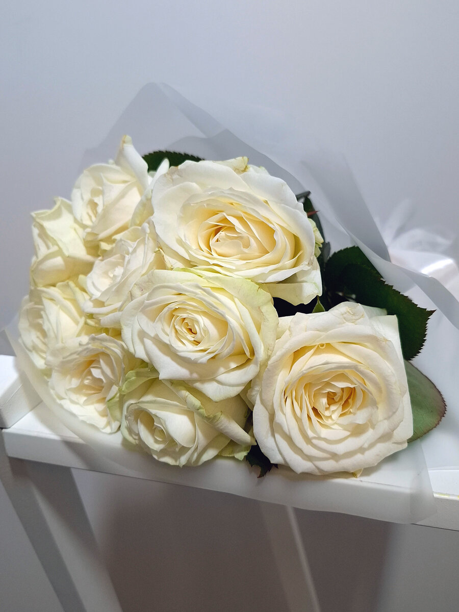Букет нежных белых роз Avalanche, 9 штук, высота 50 см. Florentika
