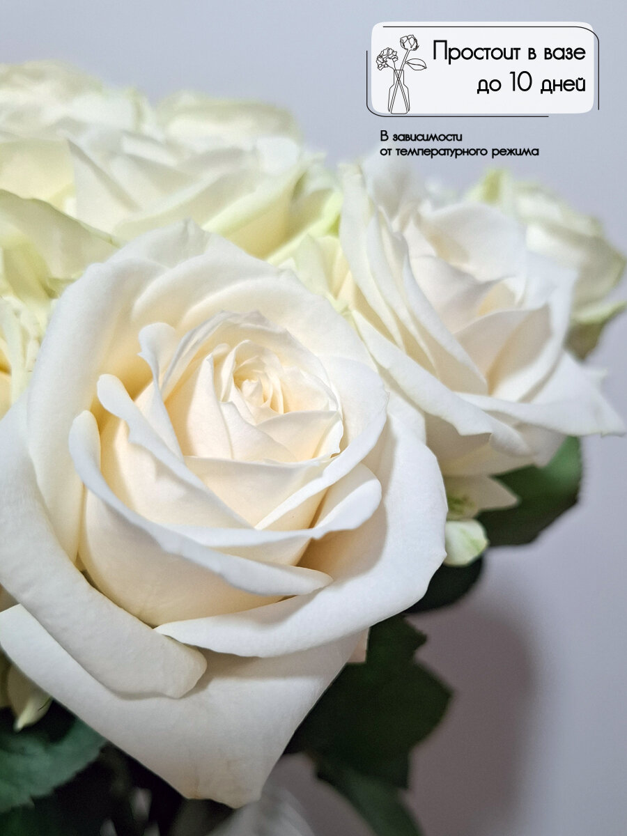 Букет нежных белых роз Avalanche, 11 штук, высота 40 см. Florentika