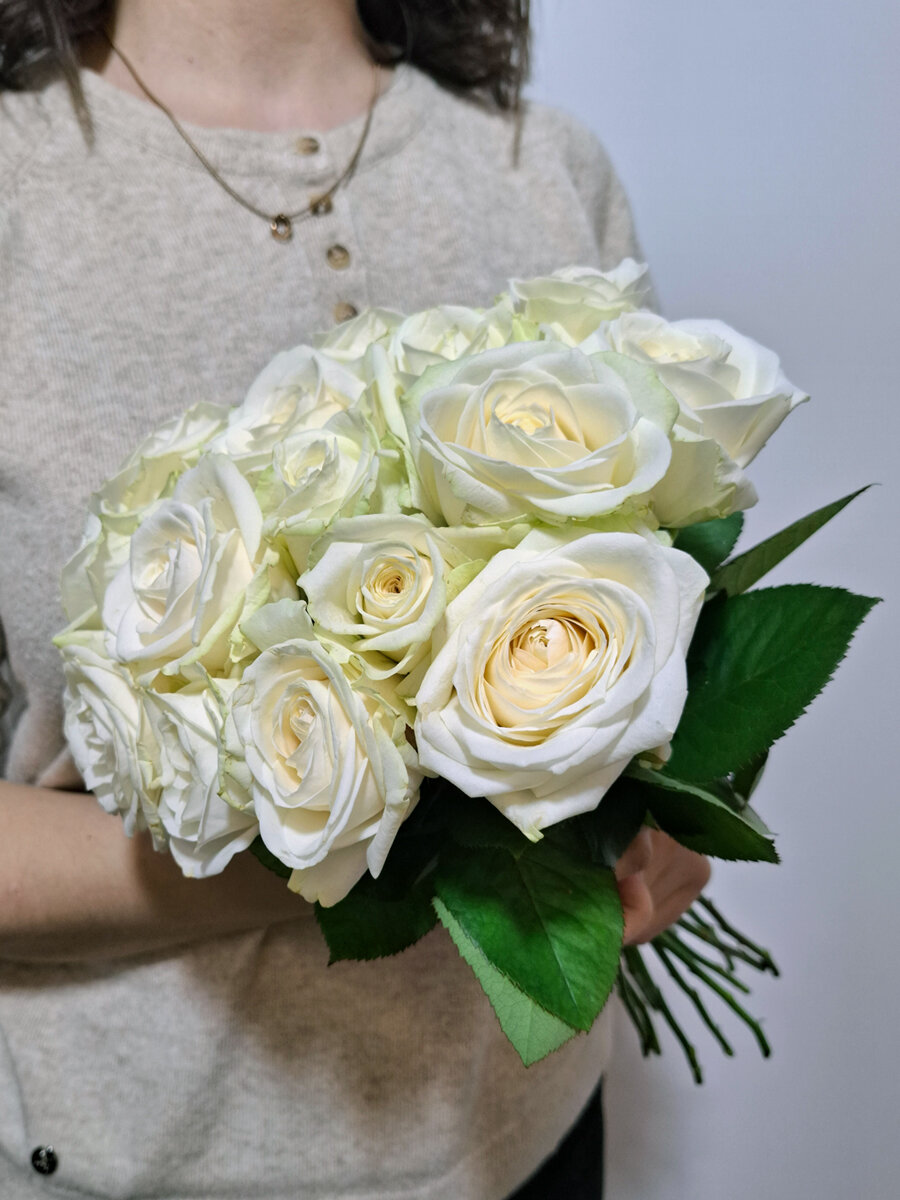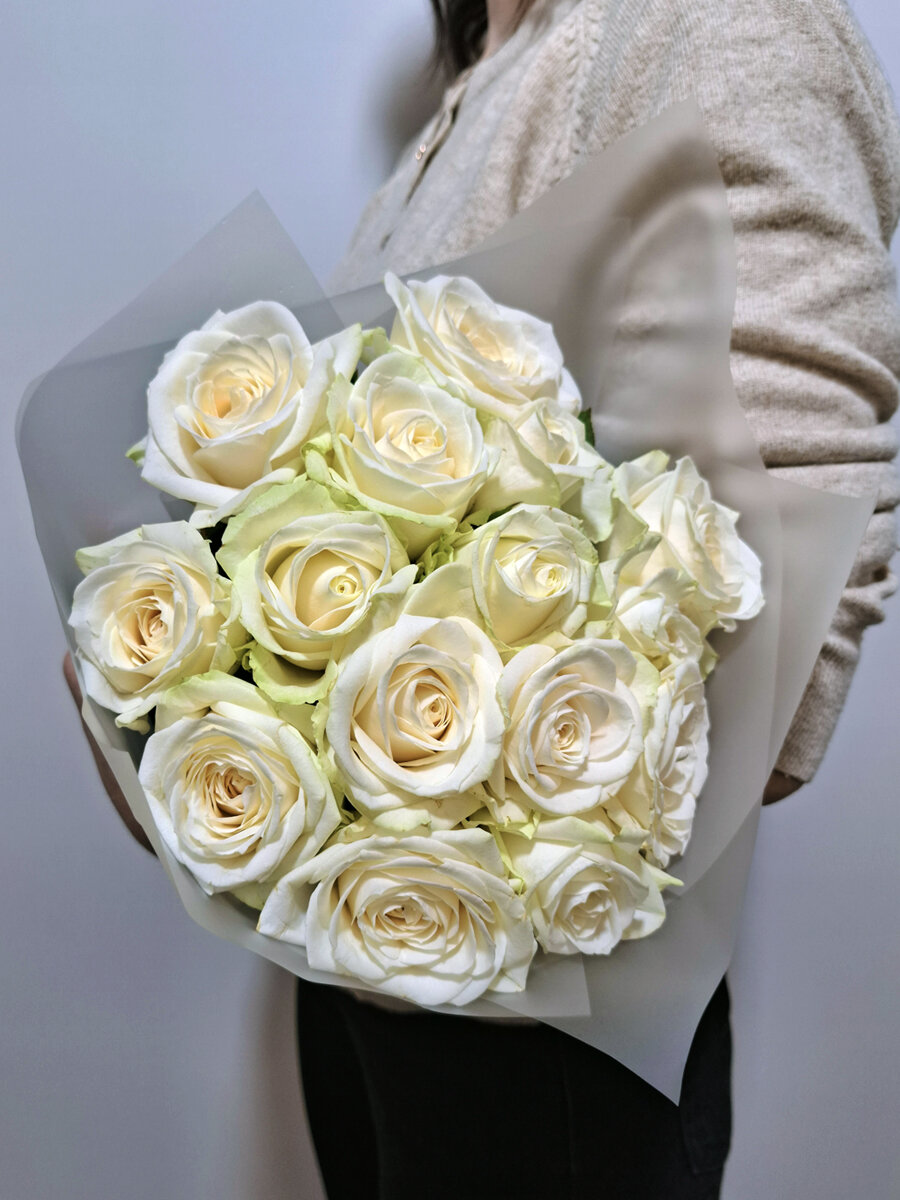 Купить Букет нежных белых роз Avalanche, 15 штук, высота 40 см. Florentika