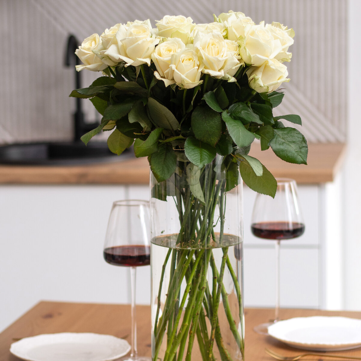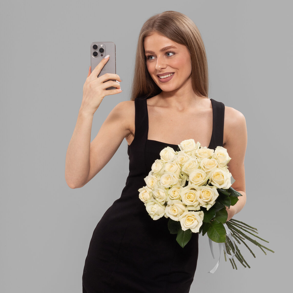 Букет белых роз Avalanche, 25 штук, высота 50 см. Florentika