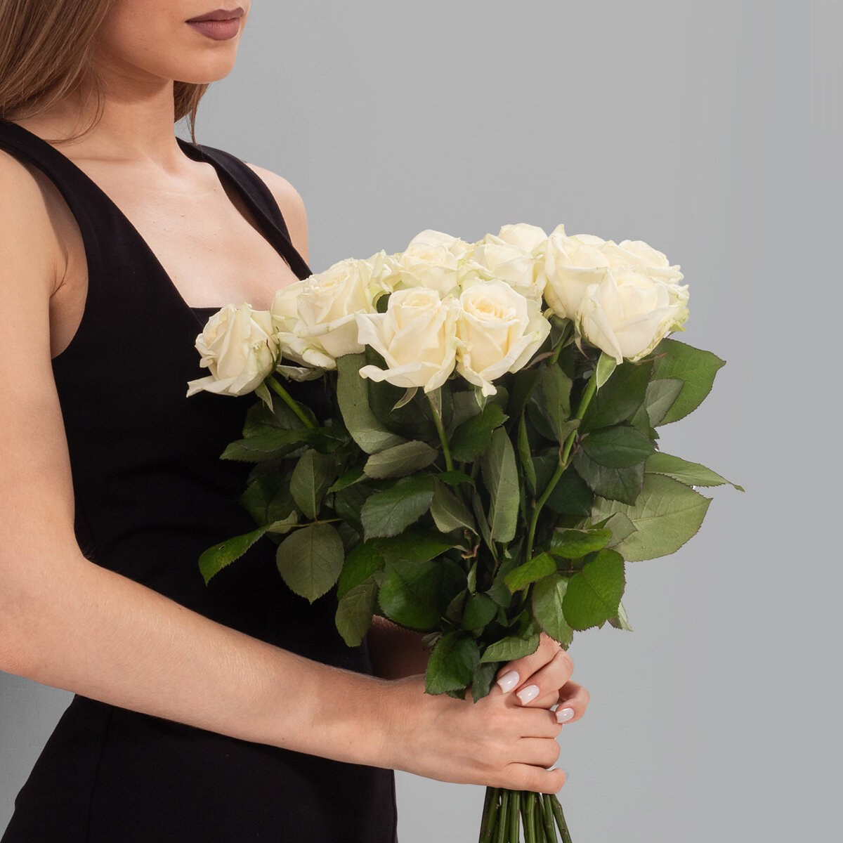 Букет нежных белых роз Avalanche, 15 штук, высота 40 см. Florentika