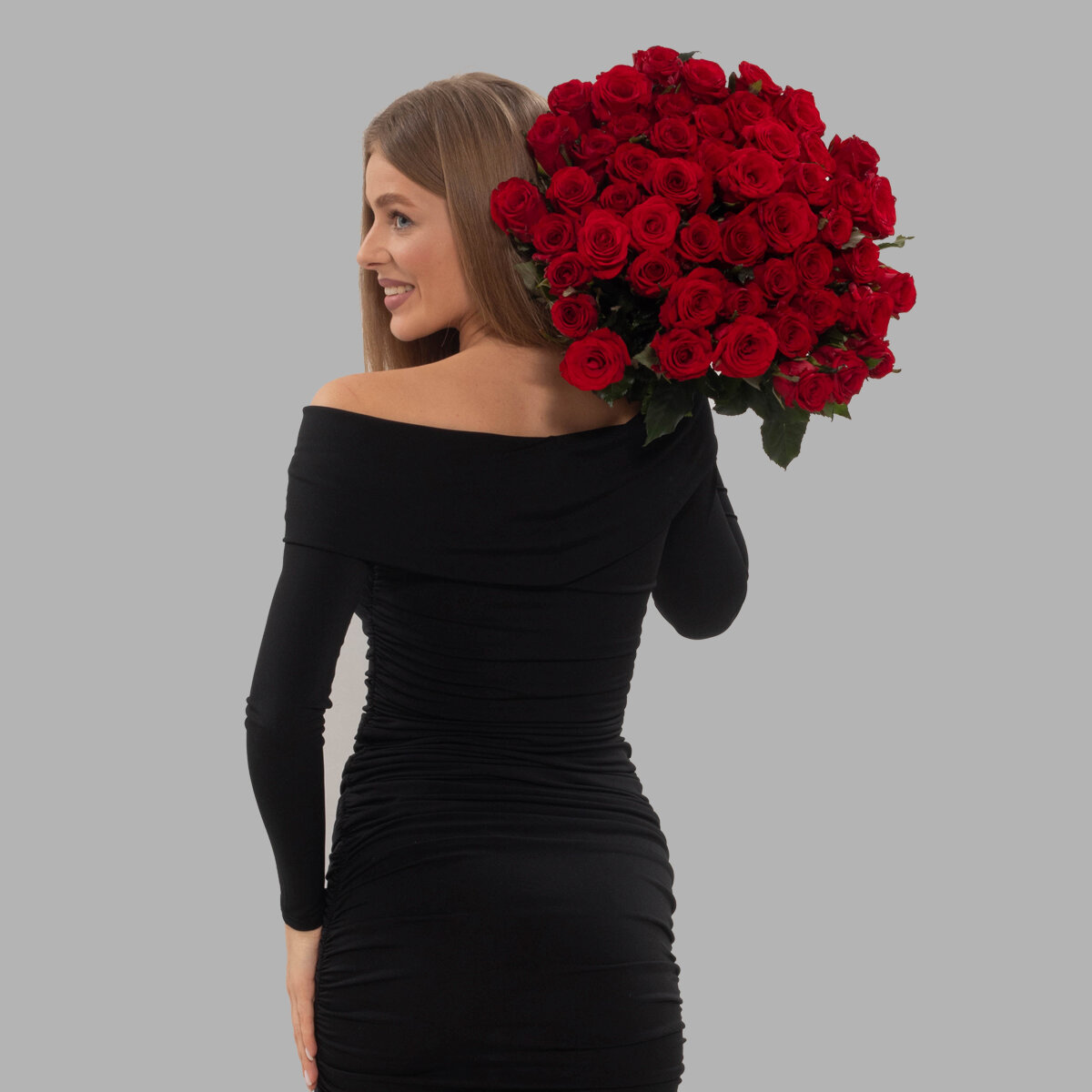 Купить Монобукет Red Eagle, красные розы, 51 штука, высота 50 см. Florentika