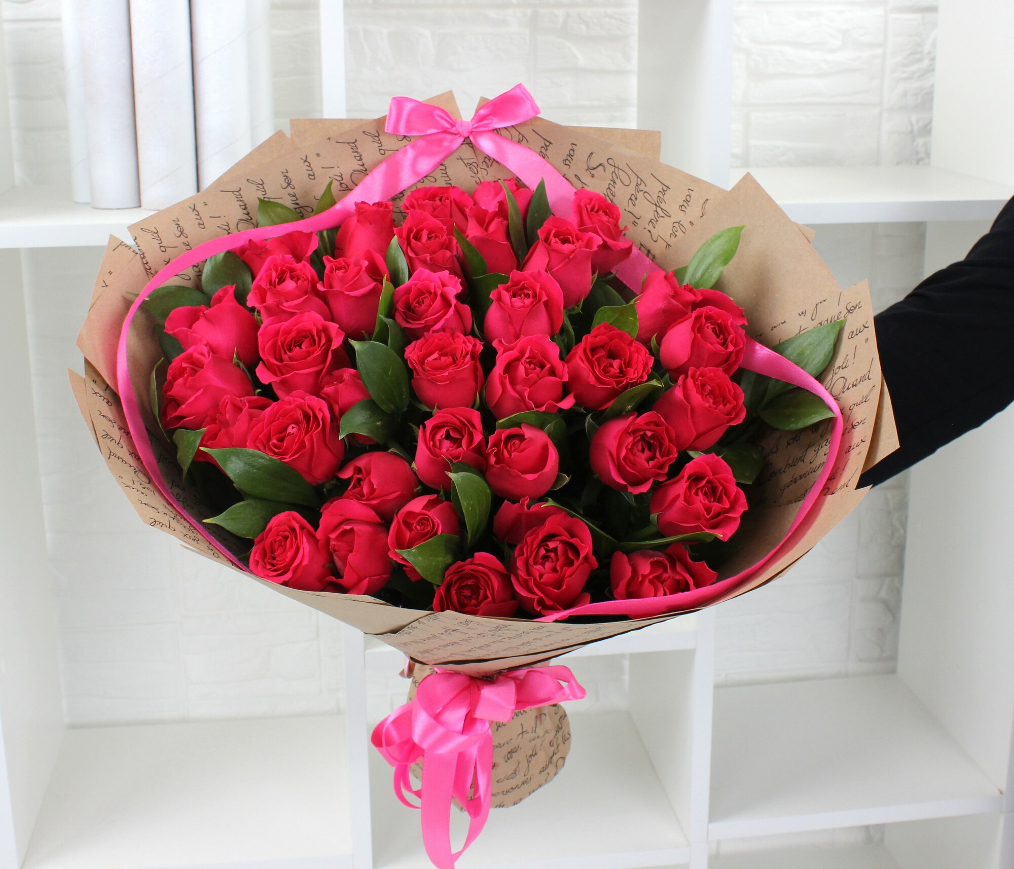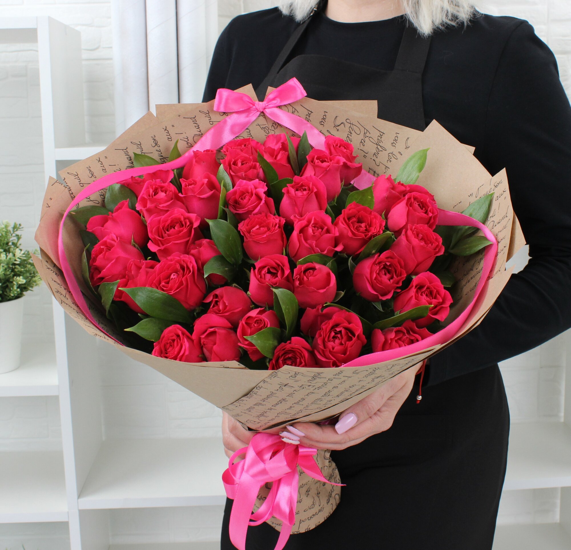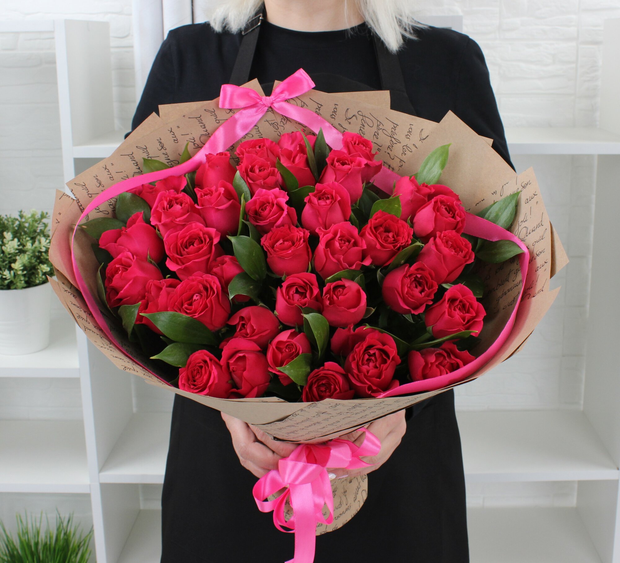 Ниже Вы можете прочитать отзывы на 35 малиновых роз 40см с зеленью, ознакомится с подробными характеристиками, посмотреть интересные обзоры и фотографии на 35 малиновых роз 40см с зеленью.